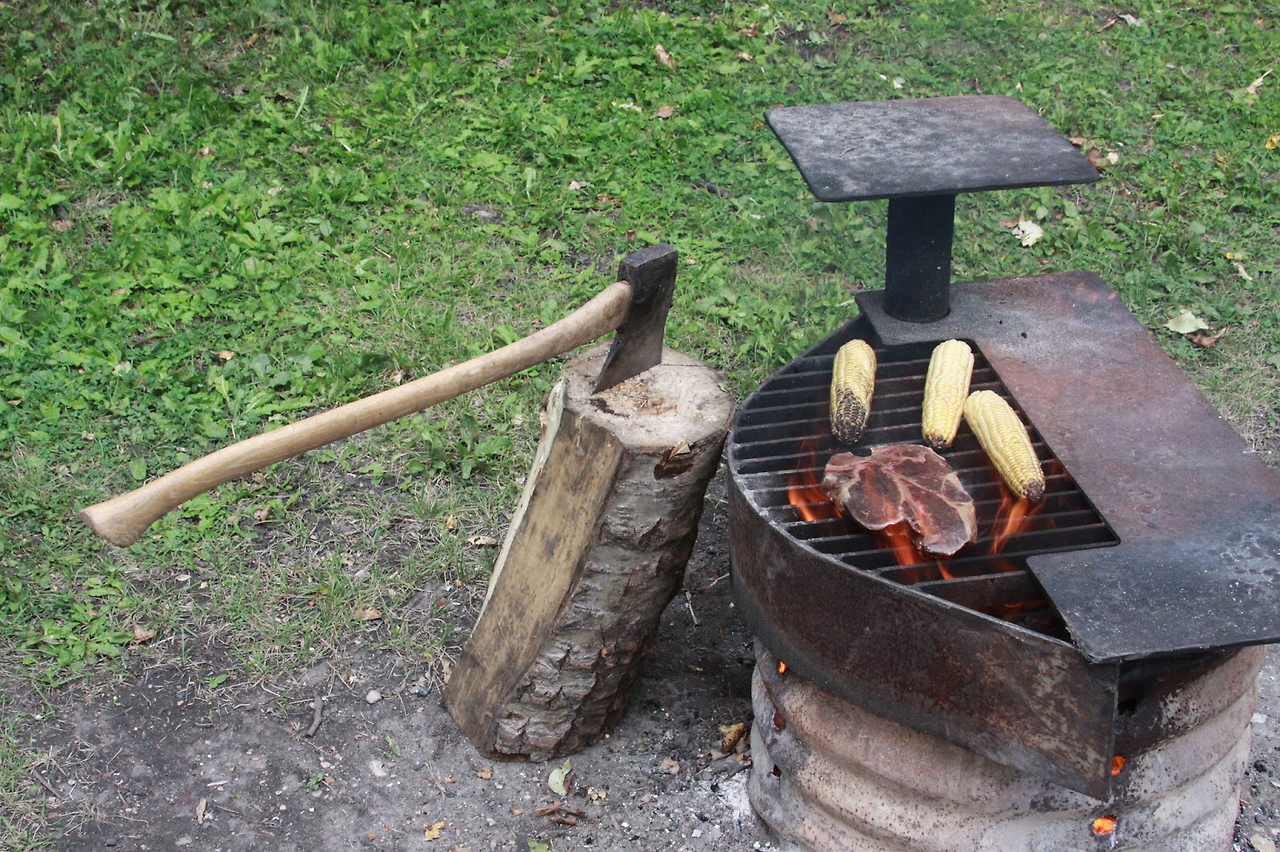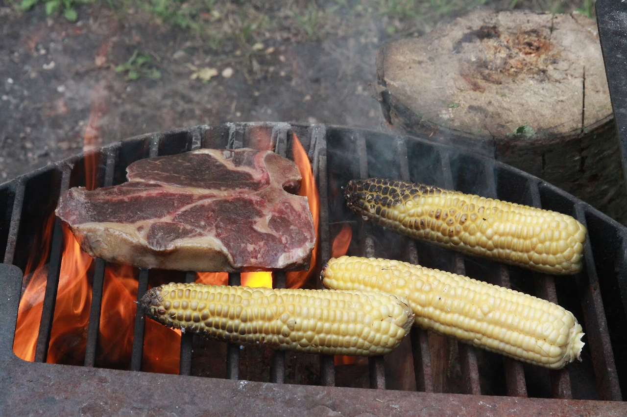 그리고 녀석이 좋아하는 T-Bone Steak. 근데 캠핑에서의 모닥불에 구워 먹는게 워낙 오랫만이라 너무 센 불에 구워 버렸다. 이후 부터는 장작이 탄후 숯이 된 다음 제데로 구워 먹었다.
