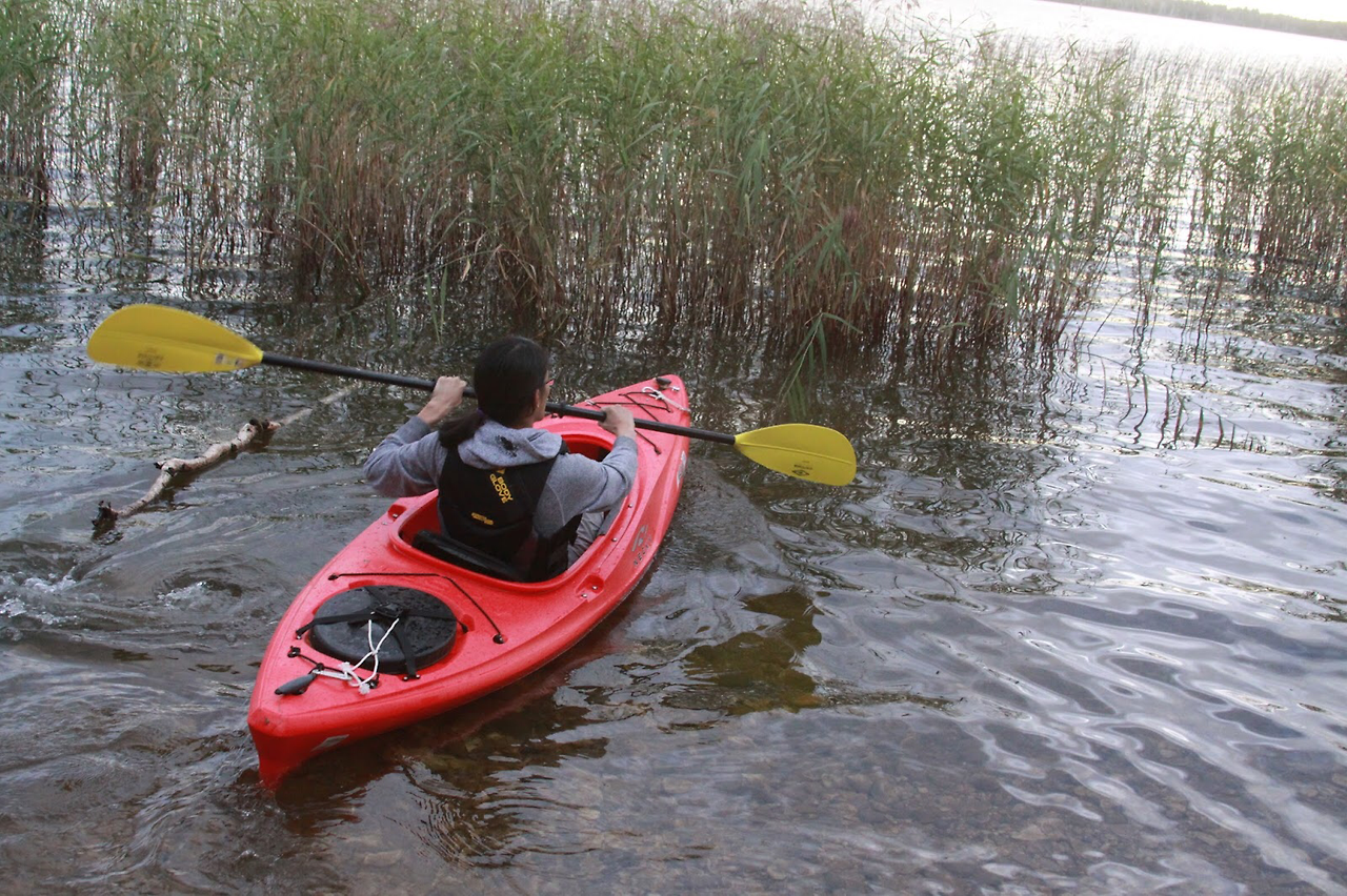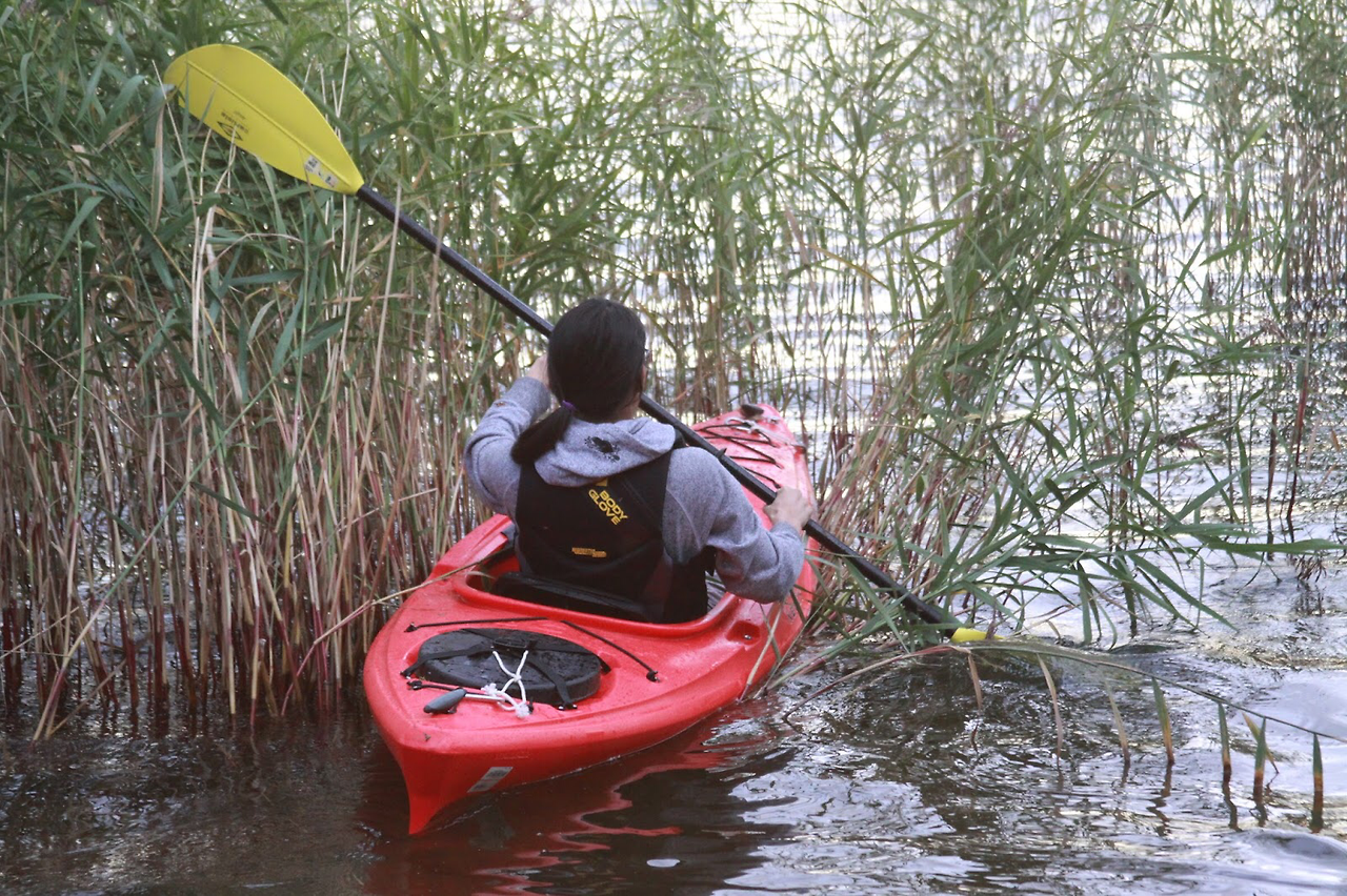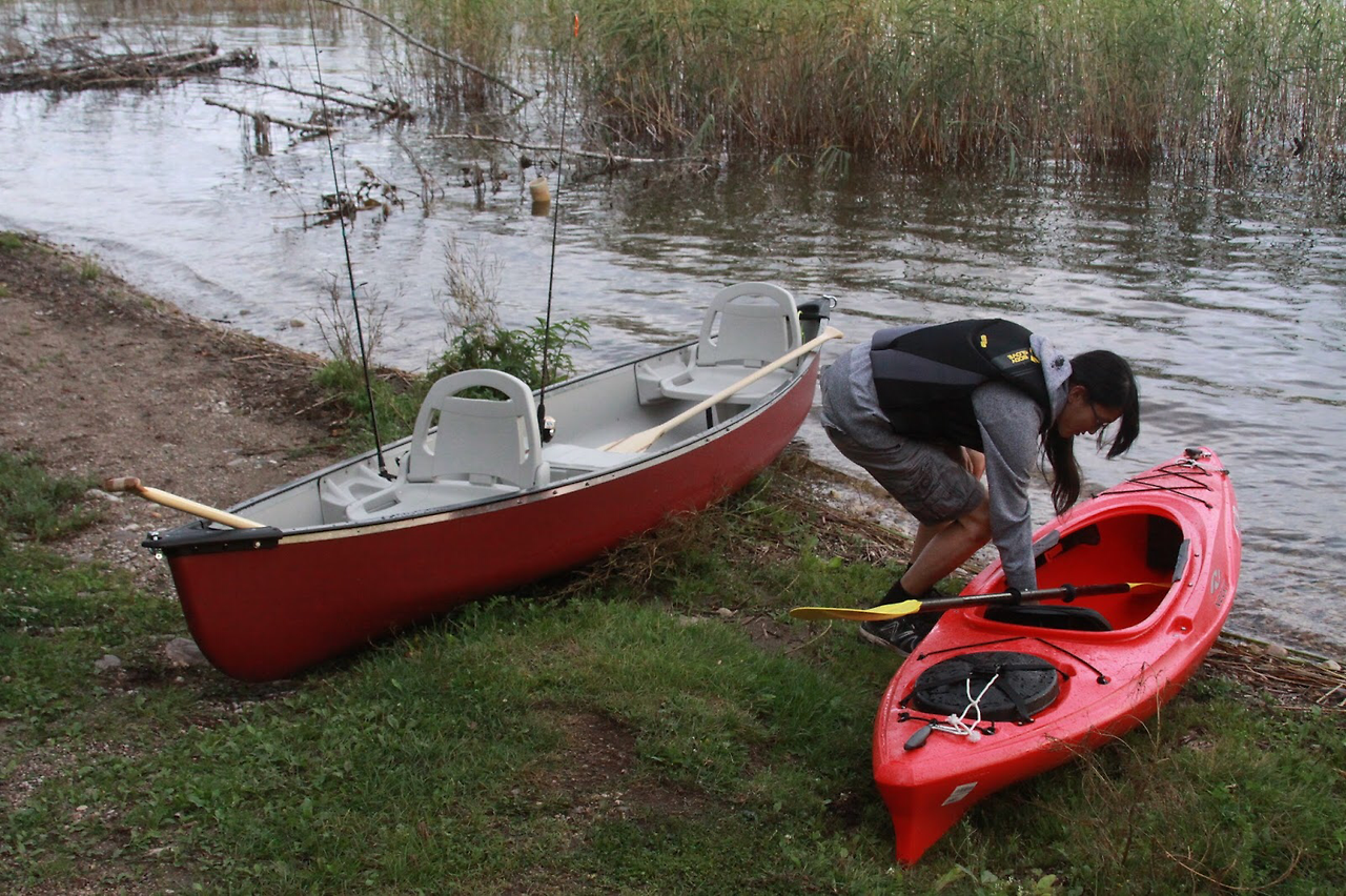 카약 타기를 좋아하는 아들은 카누 트레일에서 돌아오자 마자 카약을 끌어냈다.