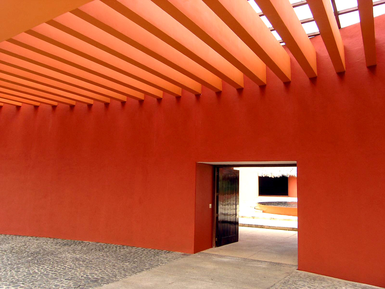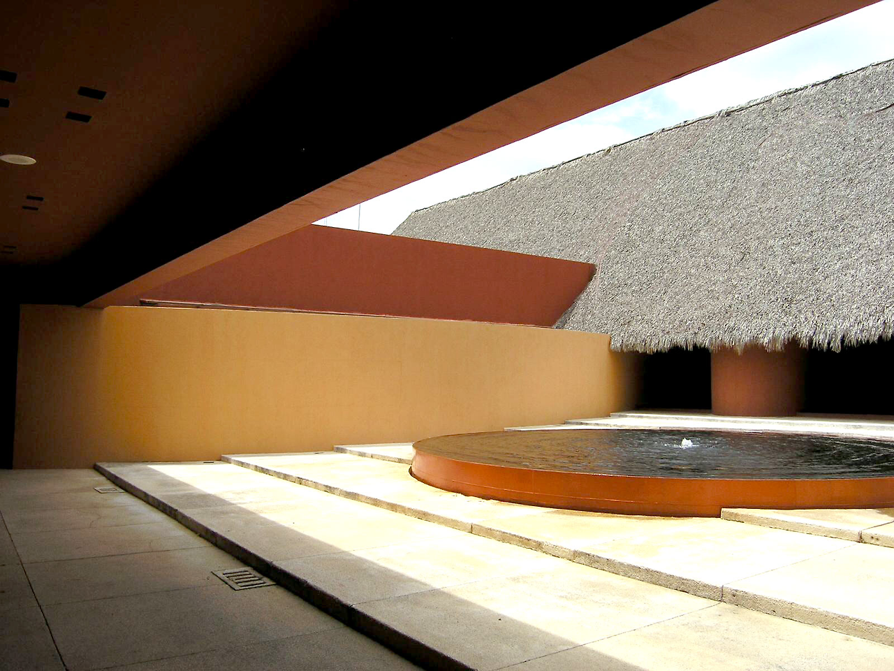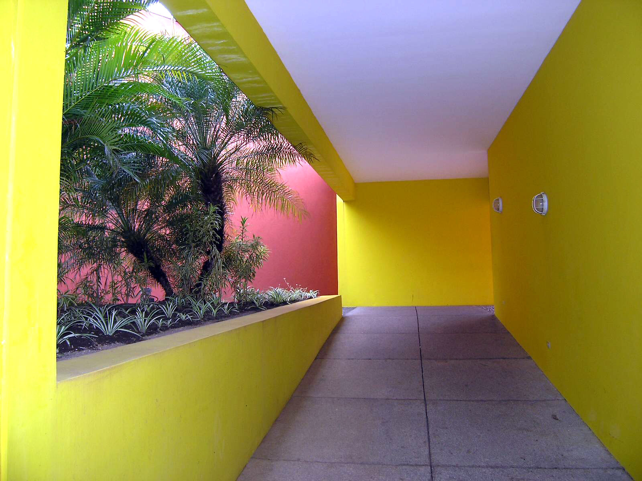 네하파 컨트리 클럽의 마지막 홀에서 바라본 클럽 하우스. 스페인 출신 건축가가 설계한듯한 직선 기하학적 구조와 색상이 가히 남달랐다. vertical palm trees 와 그 부채살 잎새들을 어울리게 한 건축가의 솜씨라니.