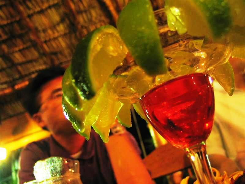 안녕! 이란 뜻의 Ola 레스또란테. 나무 기둥과 야자수 잎등으로 지붕을 만든 시원하고 큼지막한 2층 Hut으로 올라간 난 직원들과의 회식을 하러 이곳에 왔었었다. 맘씨 좋을 것 같은 푸짐한 체격의 웨이터가 제일 먼저 가져 나오는 drink 들 중에서 눈을 뗄 수 없는게 있었는데, 와우, 이리 예술적이고 독특한 모습의 칵테일 이라니! 다시 웨이터를 불러 이름을 물었더니, 타란툴라. 열대 지방의 거대한 살인 거미의 이름이었다. 어찌나 적절히 이름을 지었는지! 럼주 스트레이트를 조금씩 마시며 저 라임 슬아이스 한 조각씩 먹는 맛이라니! 거미를 생각하며 오싹한 기분과 거미 다리를 하나씩 뜯어 먹는다는 엽기적 생각이 겹쳐 더위 생각쯤은~~ ^,~