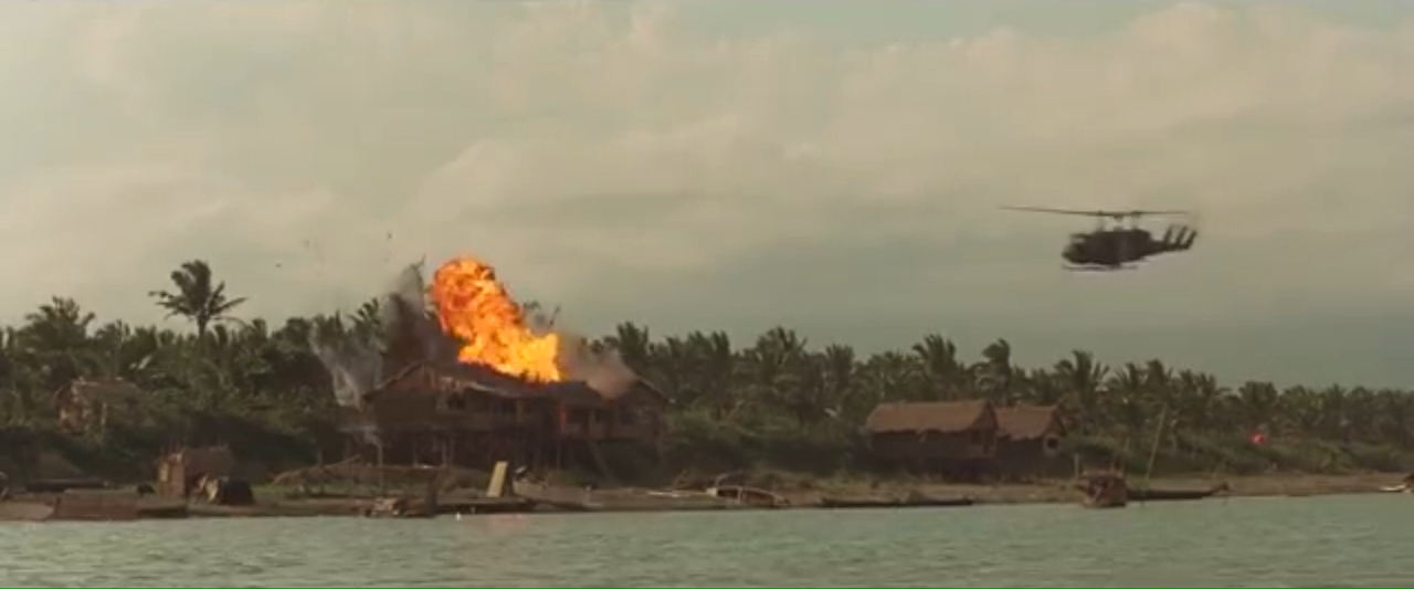 좌간, 이런 끔찍하지만 대단한 장면을 연출하기 위해 코폴라 감독 역시 필리핀에서 지옥과도 같은 촬영 과정을 감수했다 하는데, 지금은 러시아나 미국은 물론 전쟁 중인 중동의 여러 국가들과 테러 집단들 조차 자국 관련 전투 상황을 탱크나 헬기, 그리고 전투기에 부착된 적외선 모니터나 액션 캠들을 통해, 혹은 군사위성이나 드론 촬영 영상, 심지어 폭격 목표를 따라가는 미사일 코에 부착된 유도 카메라를 통해 생중계하는 지경에 이르게 되면서 리얼한 전쟁 영화 장면을 만들어 내야 하는 감독들의 상상력을 무색하게 만들고 있다.