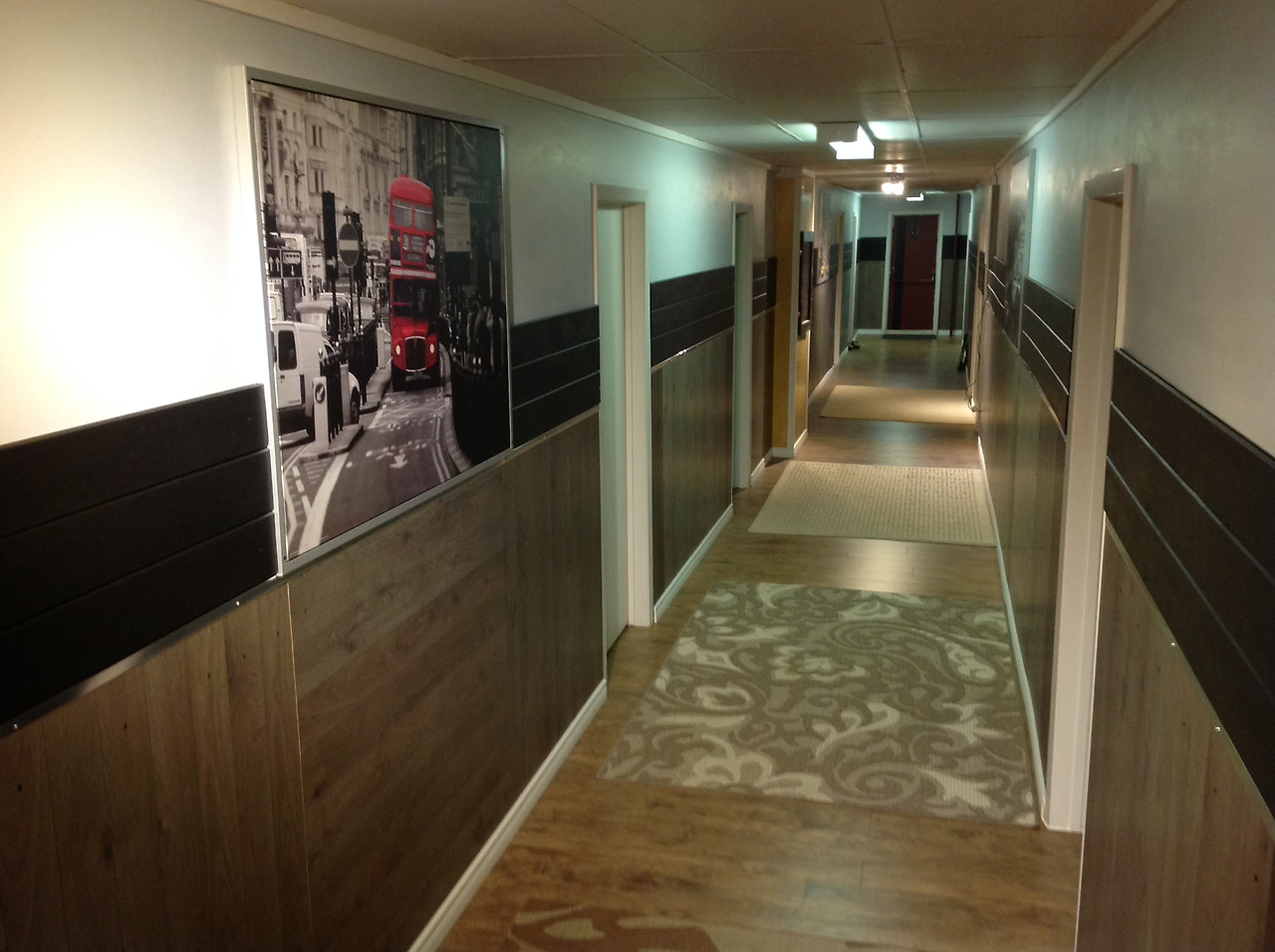 모든 객실과 복도의 카펫을 다 뜯어내고 모두 나무 마루로 깔았다. 내가 나무 패널들을 재단하는 전기 톱의 요란한 소리는 일년 내내 조용한 마을에 우렁차게 울려 퍼졌었다. 복도와 객실의 카페트를 모조리 걷어내고 우드 패널을 깔기 시작했고 모든 벽면의 하단부 역시 우드 패널로 깔고 두르는데만 일년이 소요되었다. 엄청난 무게의 우드 패널을 구입에 실어 오기위해 매번 대형 트럭까지 빌려야 했고 수만불의 자금이 소요되었다. 거의 오십개에 달하던 브라운관 TV를 사십인치 이상 평면 TV 로 교체하고 갈아 치운 변기만해도 삼십개가 넘는다.