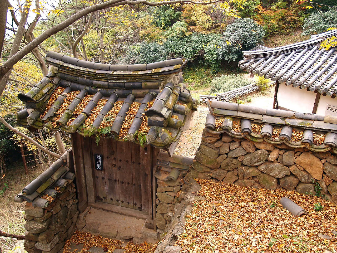 구도자들만이 출입할수 있는 공간을 잠시 엿보는 것은 내밀한 곳을 향한 짖궂은 호기심을 채운다기 보다는 경계를 나눔에 있어서의 조화로운 미니멀리즘을 읽게도 했다. 자연으로부터 만들어진 이 작은 담장과 최소한의 통과적 의식을 부여하는 작은 출입문은 이 공간의 권위를 오히려 극대화 시키고 있었다.