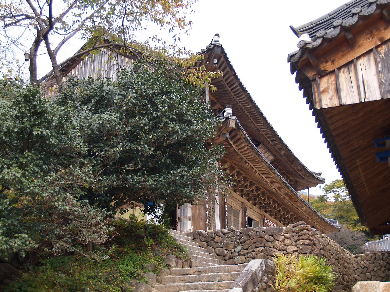 이 아름답고 장중한 목재 건축물은 어느 방향에서 보나 경탄을 금치 못하게 한다. 대웅전을 둘러보며 그 부드러운 기둥을 쓰다듬을라치면 수많은 왕조의 흥망성쇠의 소용돌이 속에서 이곳에서 벌어졌을 전설적 야사들의 속삭임이 들리는듯도 하고.