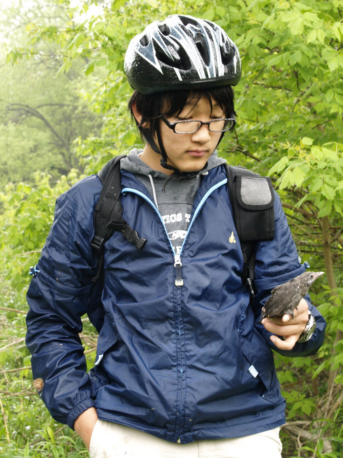 어미를 잃었는지 어미 곁을 떠날 시간이 되었던 건지 어린새는 비오는 숲에서 낑낑 거리고 있었다. 아들은 비에 젖은 새를 살피다 잎사귀로 작은 집을 집어줬다.