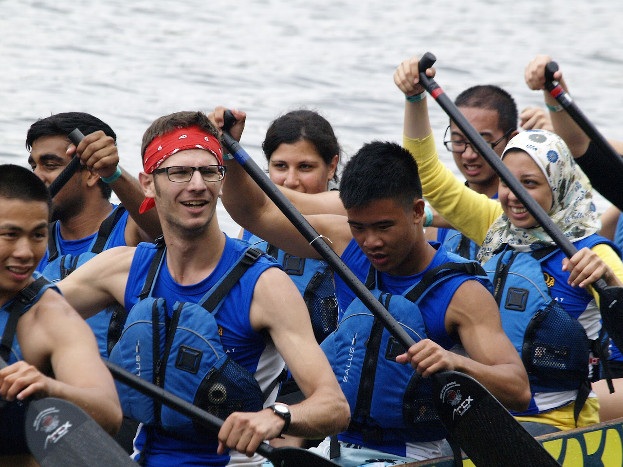 앞과 뒤에서 북을 치며 나아갈 방향을 잡고 의기를 돋궈주는 두명의 리더들과 촘촘히 어깨를 나란히한 스무명이나 되는 선수들은 한마음으로 있는 힘을 다해 노를 젓는다. 그들의 피부색은 모두 다르다. 희잡을 쓴 얼굴, 떠꺼머리 동양계, 가무잡잡한 인도나 중동계, 그리고 흑백 청년들.. 하지만 똑같이 만면한 웃음을 지으며 혹은 단호하고 결의에 찬 표정으로 다같이 한방향으로 노를 젖는다. 이들 구성원의 서로 다른 모국어나, 서로 다른 종교와 문화, 그리고 피부색과 정치 성향, 교육수준의 차이, 혹은 성적 취향 조차도 드래곤 보트를 한 방향으로 밀고 나가는데 하등의 방해가 되지 않는다. 캐나다가 그러하듯.