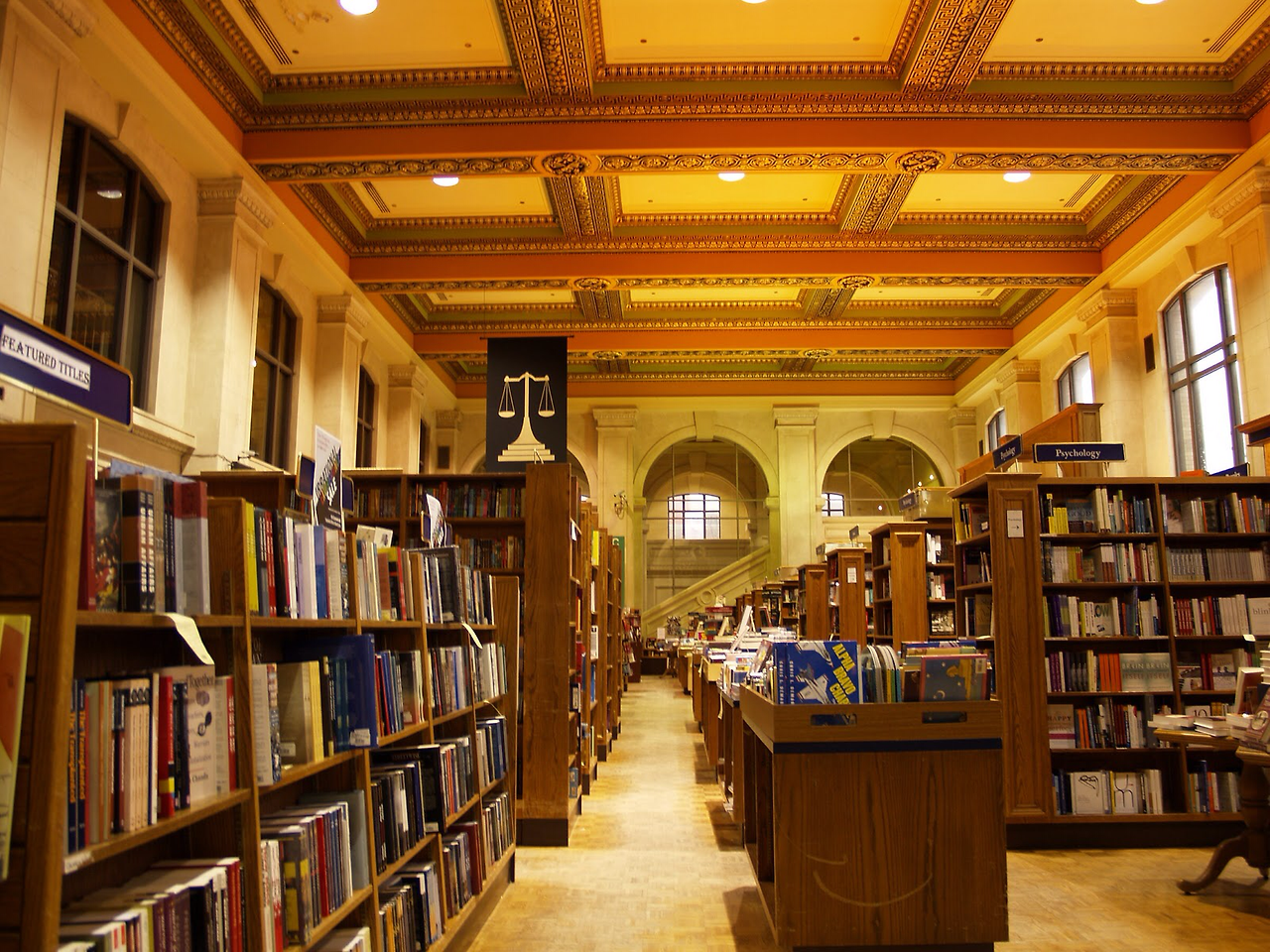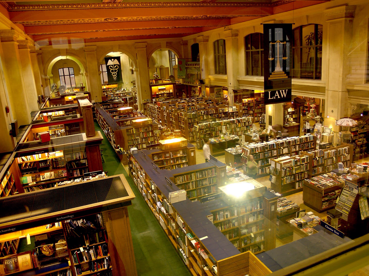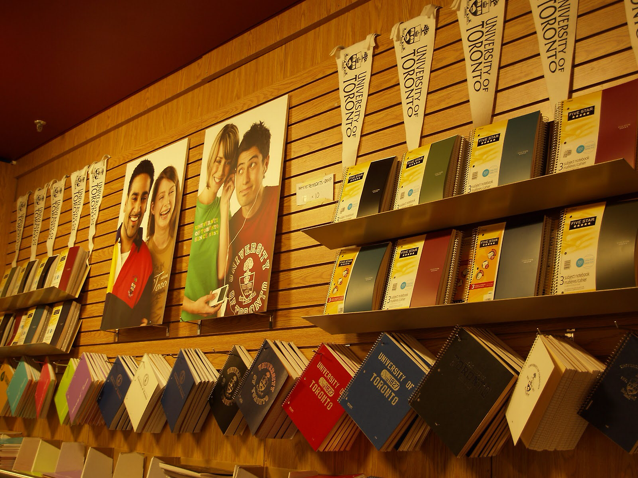 절제된 권위를 자랑하는 빅토리아 식 건축 양식으로 지어진 이 토론토 대학 건물은 내부 역시 영국의 왕궁 못지 않는 정성이 곳곳에 스며있는데 널찍하고 아름다운 한 공간에 학교 북스토어가 자리 잡고 있다.