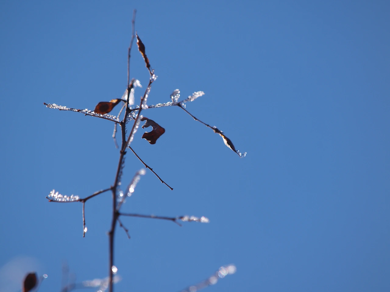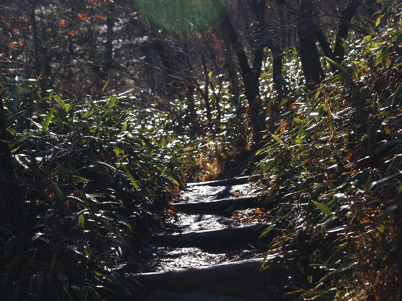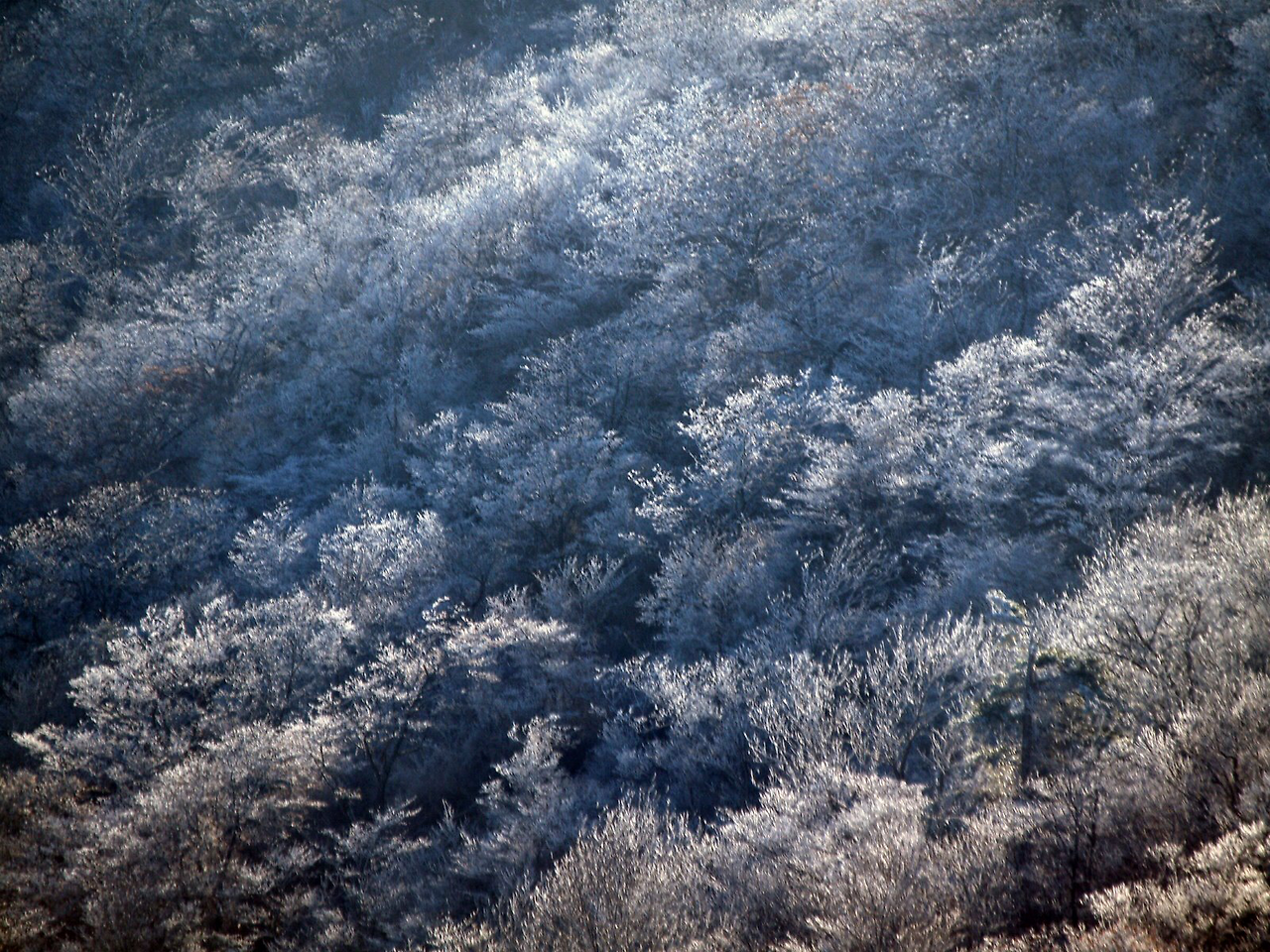 더 이상 신선할 수 없는 대기의 습기는 밤새 수많은 나뭇가지와 마른 입사귀들에 크리스털 옷을 입혔고 산행 내내 함께했던 대낮의 태양은 그 옷들을 모두 벗겨내며 반짝이는 영롱함으로 화하게 했다.