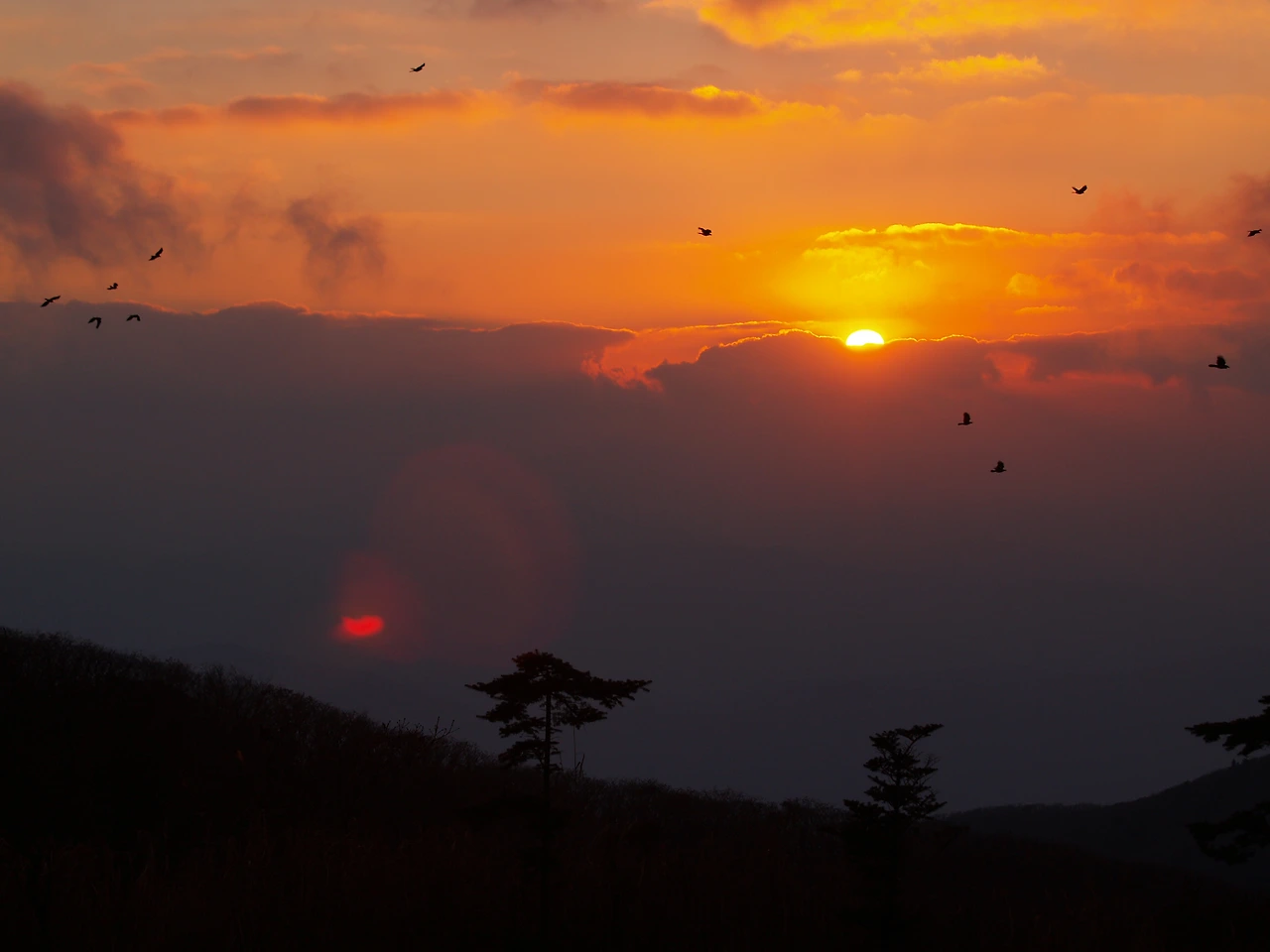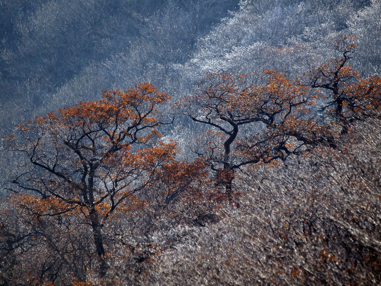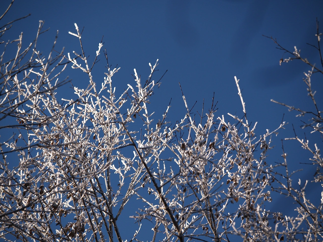 더 이상 신선할 수 없는 대기의 습기는 밤새 수많은 나뭇가지와 마른 입사귀들에 크리스털 옷을 입혔고 산행 내내 함께했던 대낮의 태양은 그 옷들을 모두 벗겨내며 반짝이는 영롱함으로 화하게 했다.