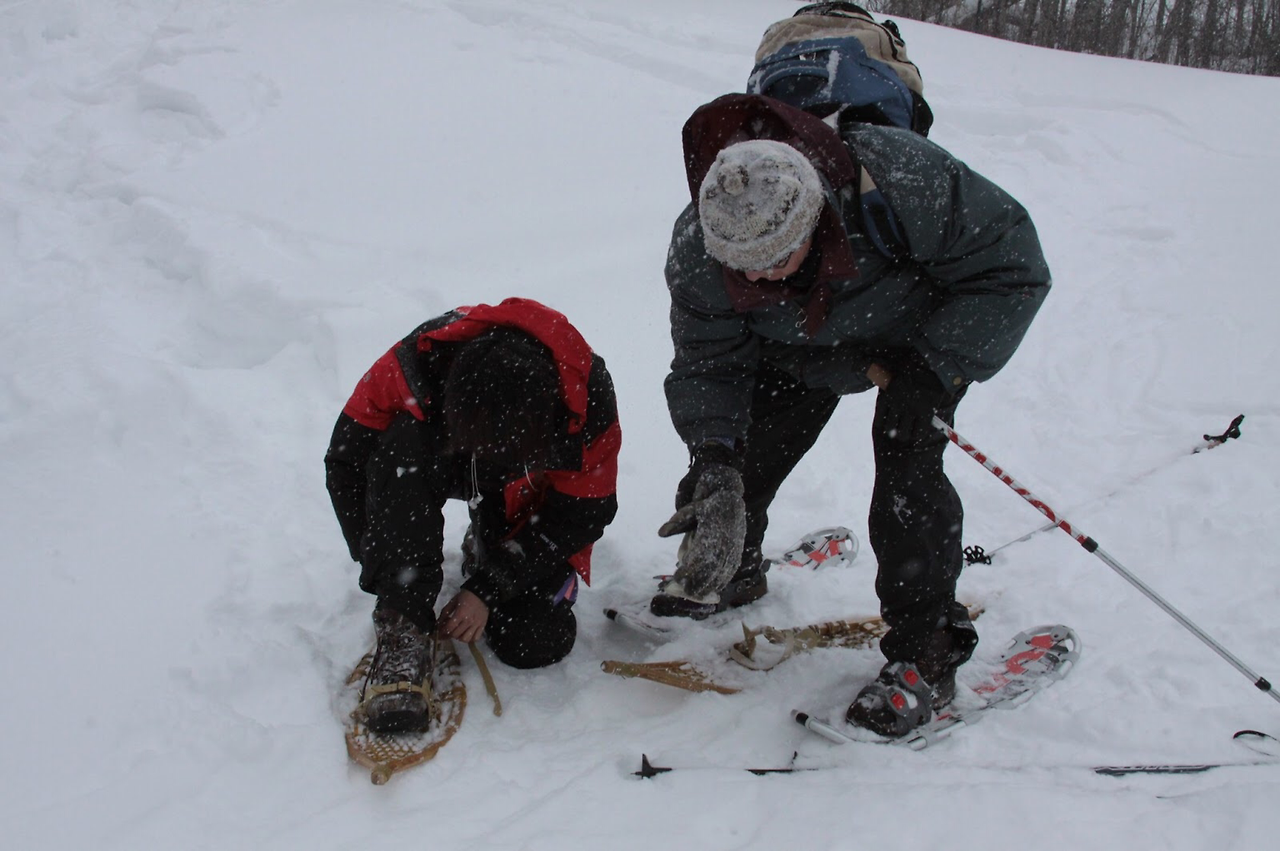 아들은 내가 가지고 있던 나무와 가죽으로 엮어 만든 캐나다의 전통적인 설상화를 신었었는데 자꾸 벗겨지는 바람에 고생을 했었다.