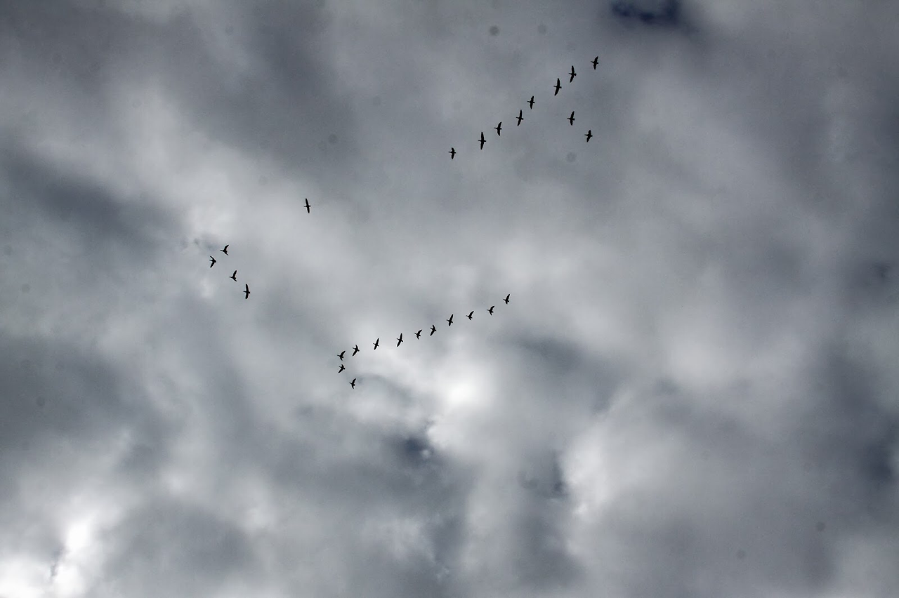 남쪽으로 날아가는 기러기들의 모습에서 애잔함을 느끼기도 하지만 일사분란한 비행모습은 자연의 섭리에 순응하는 건강함과 강인함을 본다.