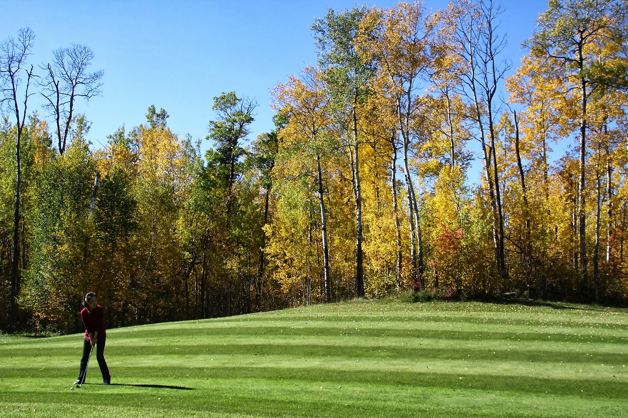 사스카츄완의 가을은 투명한 파란 하늘색과 자작나무의 노랑 단풍잎, 단 두가지 색이다. 온갖 색의 향연으로 화려함과 다양함을 자랑하는 온타리오의 단풍색에 비하면 단조롭고 소박하기만 하다. 하지만 이제 현란하고 화려함이 보여주는 성대한 열정과 외향적 에너지의 아름다움과 더불어, 언제나 우뚝 서있고, 변하지 않는 단순하고도 소박해서 투박하기까지 한 아름다움 역시 얼마나 소중한것인지를 잘 안다. 아내와 오랫만에 필드에서 즐거움을 가졌다. 앞뒤로 전혀 플레이어들이 없는 가운데 가을의 호젓함을 한껏 즐겼다.