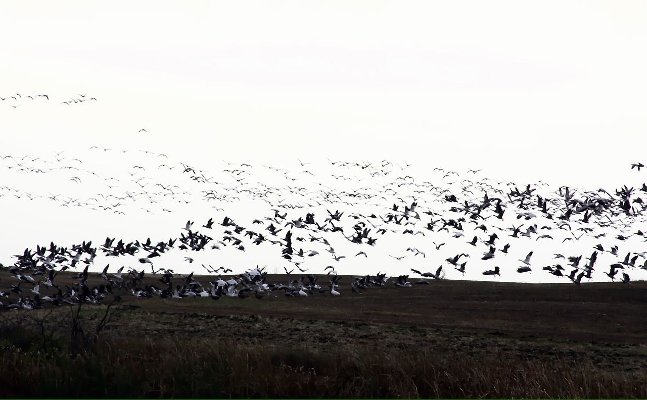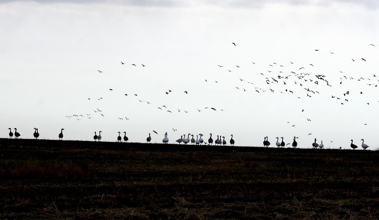 풍요로운 농지에 흩어진 낱알들은 남쪽으로 내려가는 철새들에겐 더없이 소중한 먹이감이다.