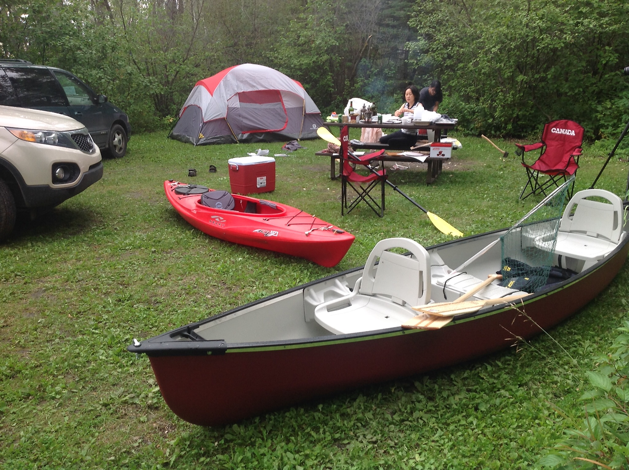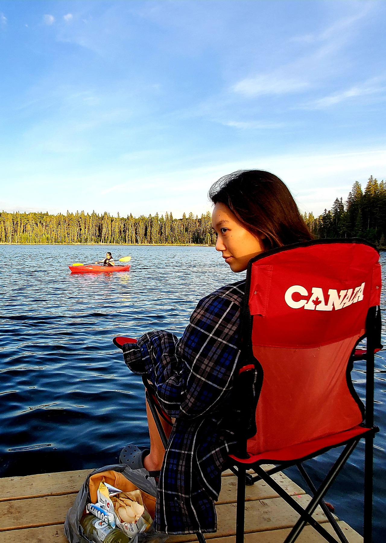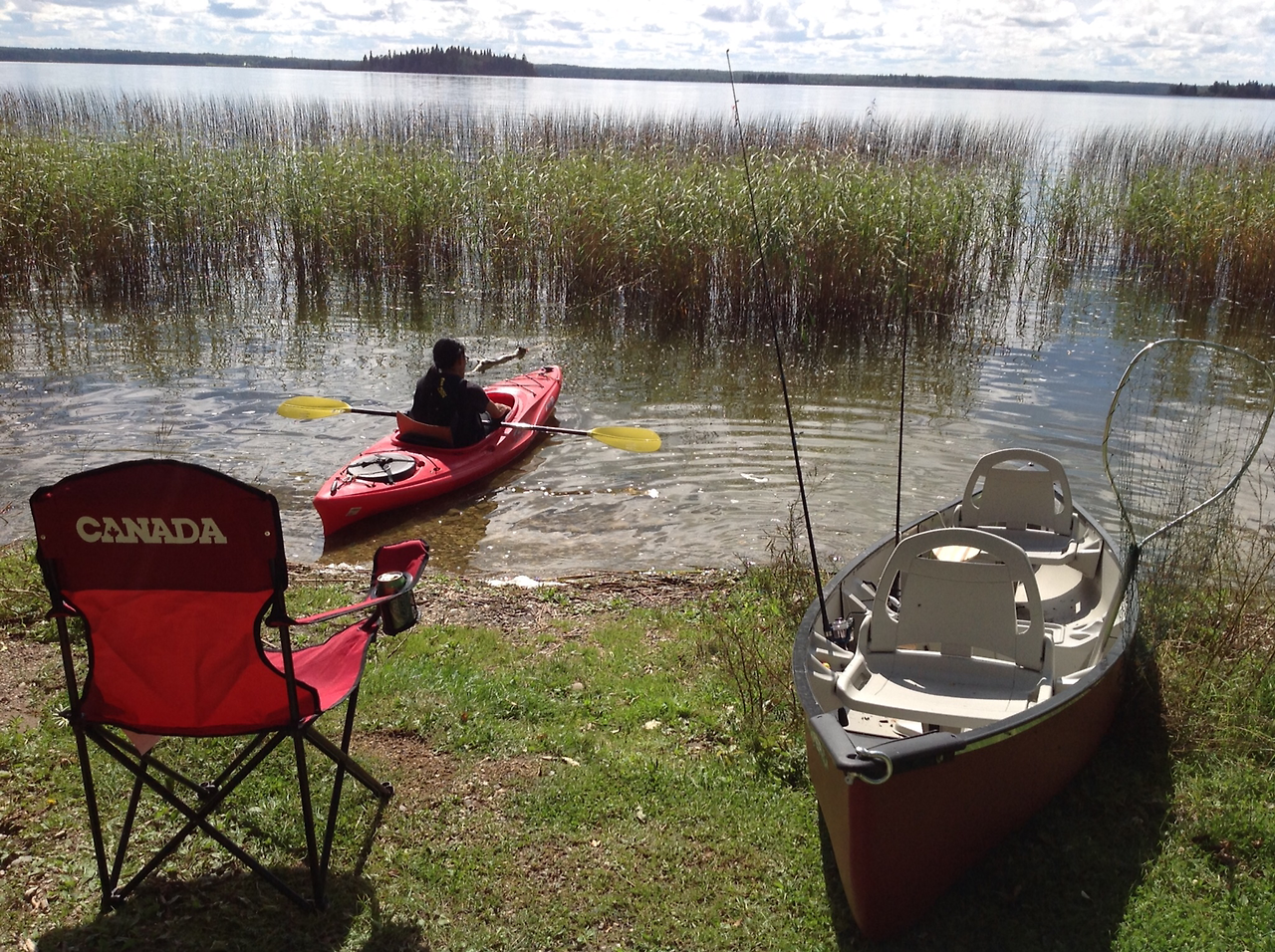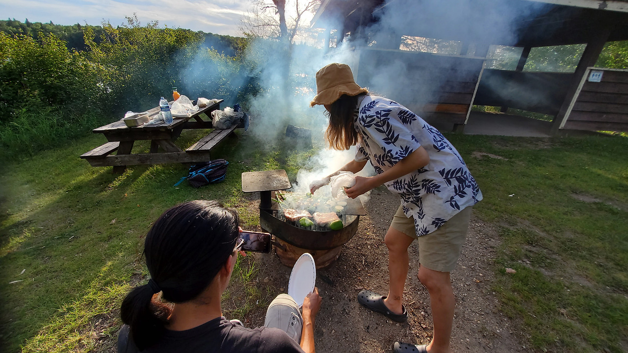 아들과 난 카약을 즐긴 후 모닥불을 피워 바나나를 구워 먹었고 날이 어두어질때 까지 책을 읽었다. 한참 책을 읽다 인기척에 돌아 보니 Park Ranger (주립공원 경찰로 이곳에서는 Conservation Officer 라 불림) 두명이 주립공원 순찰을 나온 것이었다. 이미 알고 있는 이들이라 실컷 수다를 떨었다. 지난 며칠은 엄청 더웠어! 우린 바트카 호수에 닷새 내내 왔었지. 내 아들이 토론토에서 왔걸랑. 오늘은 물고기 한마리도 못 낚았네..
