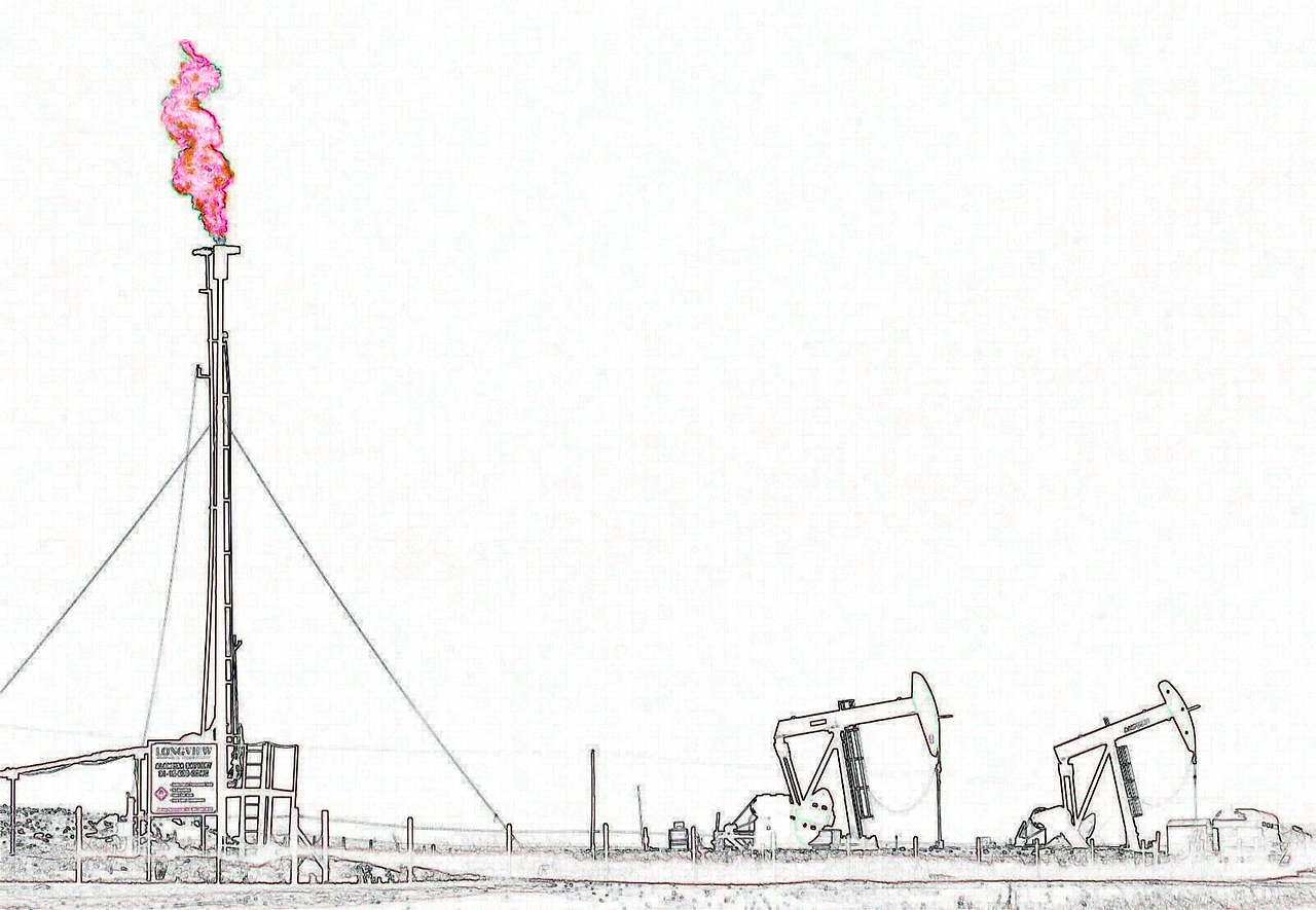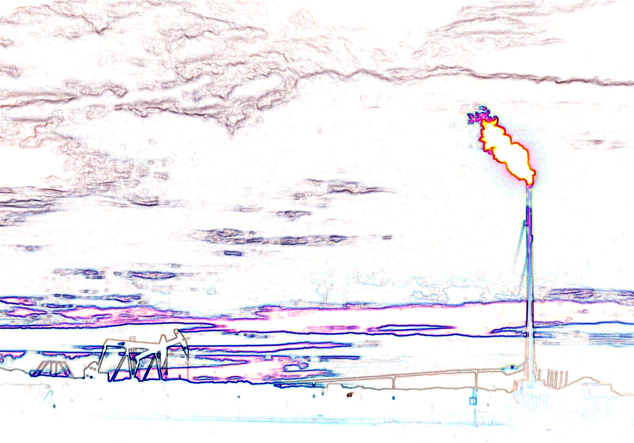 원유 채굴 시설인 펌프잭(pumpjack) 주변엔 가스를 빼내며 태워버리는 굴뚝이 하루 종일 주변을 밝히고 있었다.