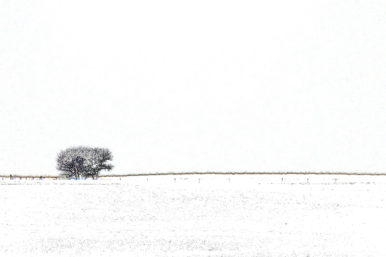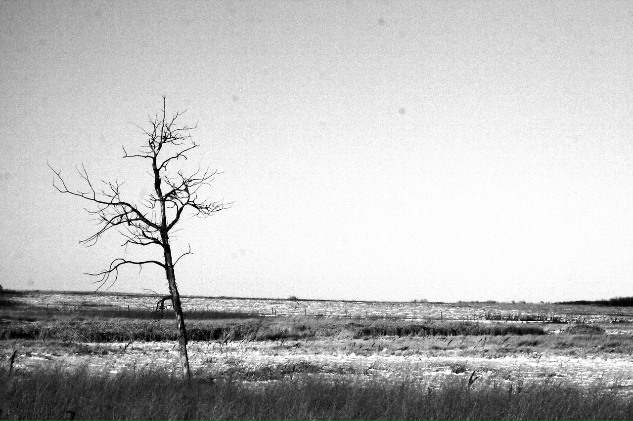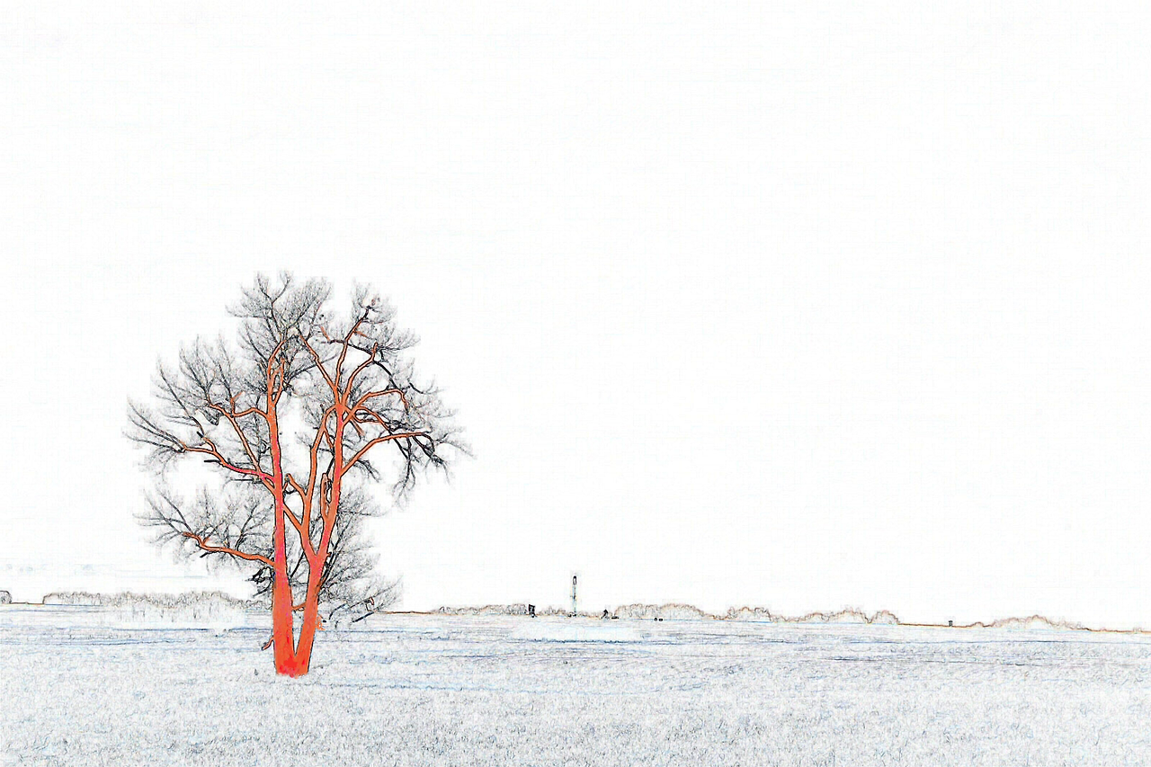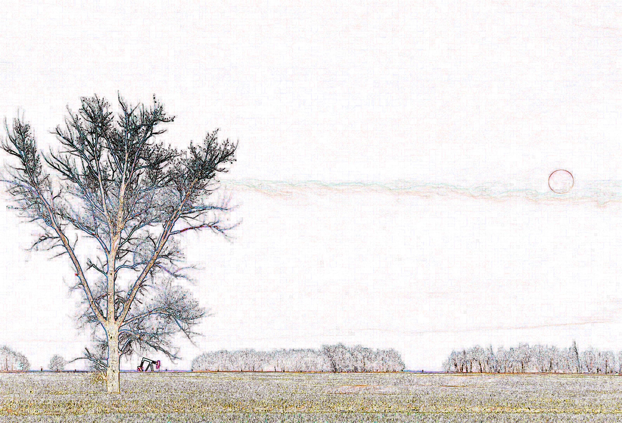 마을을 조금만 벗어나면 인공 조형물이라곤 목장의 펜스나 전봇대들, 그리고 오일을 퍼내고 있는 펌프잭 밖에 없는 이곳에서 지평선을 배경으로 뚜렷한 실루엣을 형성하며 서있는 裸木들은 다분히 미학적이다. 이젠 저러한 벌거벗고 초라한 듯한 나무가 노스텔직(nostalgic) 분위기를 자아내며 홀로 서있는 벌판을 바라봐도 황량하다는 생각이 들지 않는다. 세찬 북극의 바람이 항상 몰아치는 대평원의 겨울이지만 맨눈으로는 너무 밝아 도저히 눈을 바로 뜨기 힘든 햇살이 온 대지를 비추는 가운데 이 깨끗하고 파삭 파삭한 햇살을 오롯이 혼자 누리고 있는 저 나무가 애처롭게 보이기는 쉽지가 않은 것일까.