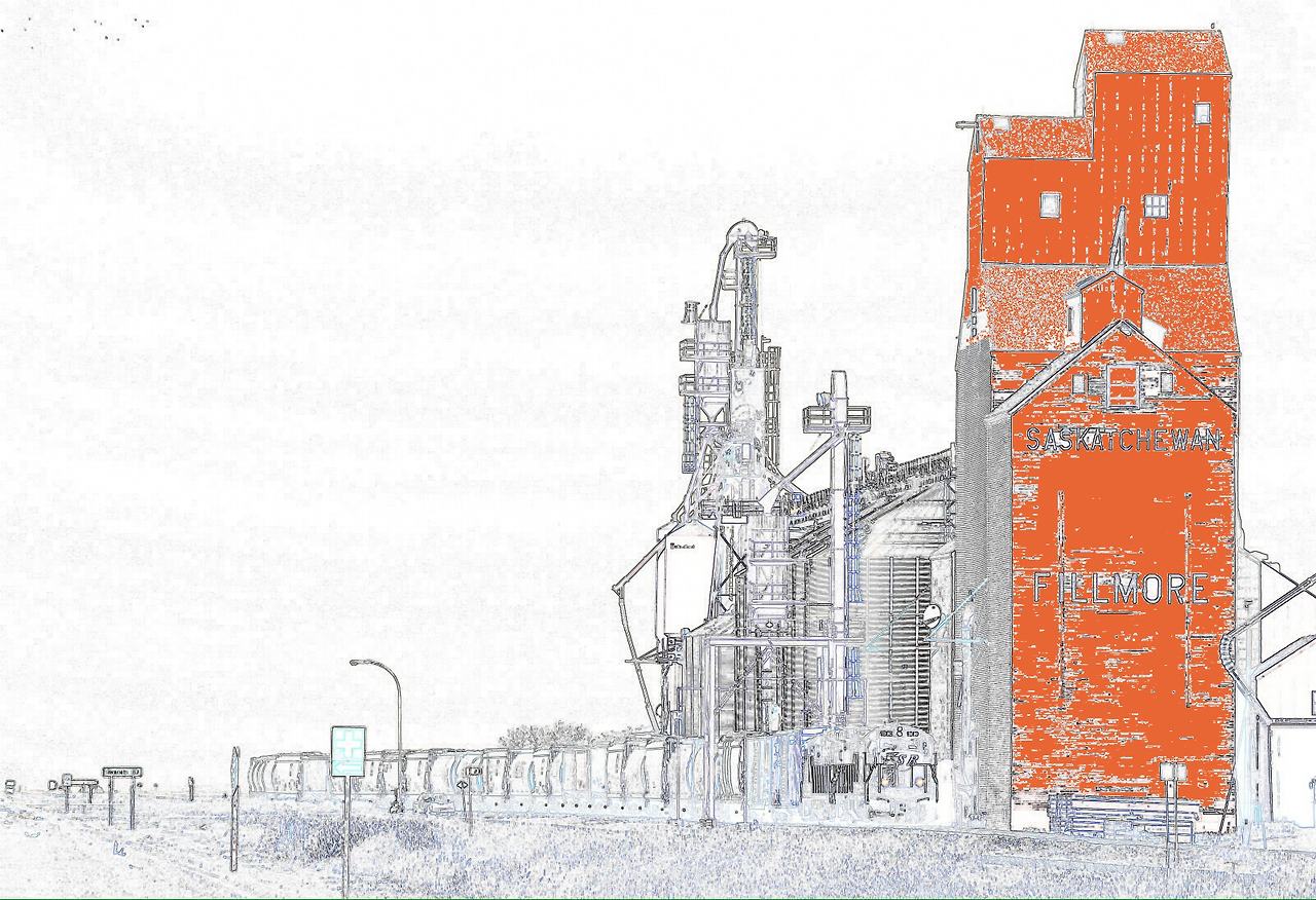 마을 Fillmore, 더 가득 채워 주세요 를 지날 즈음에야 이 멋진 곡물 저장고가 눈에 들어왔다. 거대한 평원의 곡창지대 위에 30~50 킬로미터 정도의 거리를 두고 형성된 타운들이다. 농부의 한해 산물인 각종 곡물들은 농촌 마을의 상징인 엘리베이터에 모두 수거된 후, 곡물 전용 화물 열차에 실려 캐나다 각지의 도시들로, 또 수출을 위해 항구로 나가게 된다. 내가 이곳 대평원지역에 처음 당도 했을 때, 저 거대하고도 우스운 모양의 저장고가 왜 저렇게 서 있는지 잘 알지 못했었다. 끝없는 평원의 하이웨이를 질주하면서 간혹 나타나는 마을을 지날 때면, 마을이 보이기 훨씬 전에 저 키 큰 엘이베이 터가 가장 먼저 눈에 들어오곤 했었다. 그리고 이 저장고 앞에는 언제나 철길이 달리고 있었다. Railway Ave, 철길 애비뉴는 이곳의 어느 마을에서나 가장 중심이 되는 길을 의미했다. 그리고 그 레일웨이 애비뉴 중심에 이곳 농민들의 자부심이자 희망인 저 거대한 탑이 우뚝 서있었던 거다.