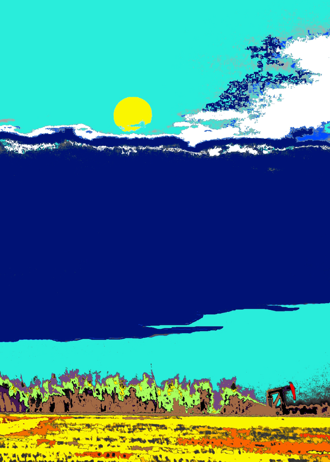 펌프잭은 메뚜기처럼 쉴 새 없이 끄덕이고 있었고 들판에 느닷없이 솟아있던 나무 한그루 역시 참 비현실적이었는데, 한편으로는 동화스러웠다.
