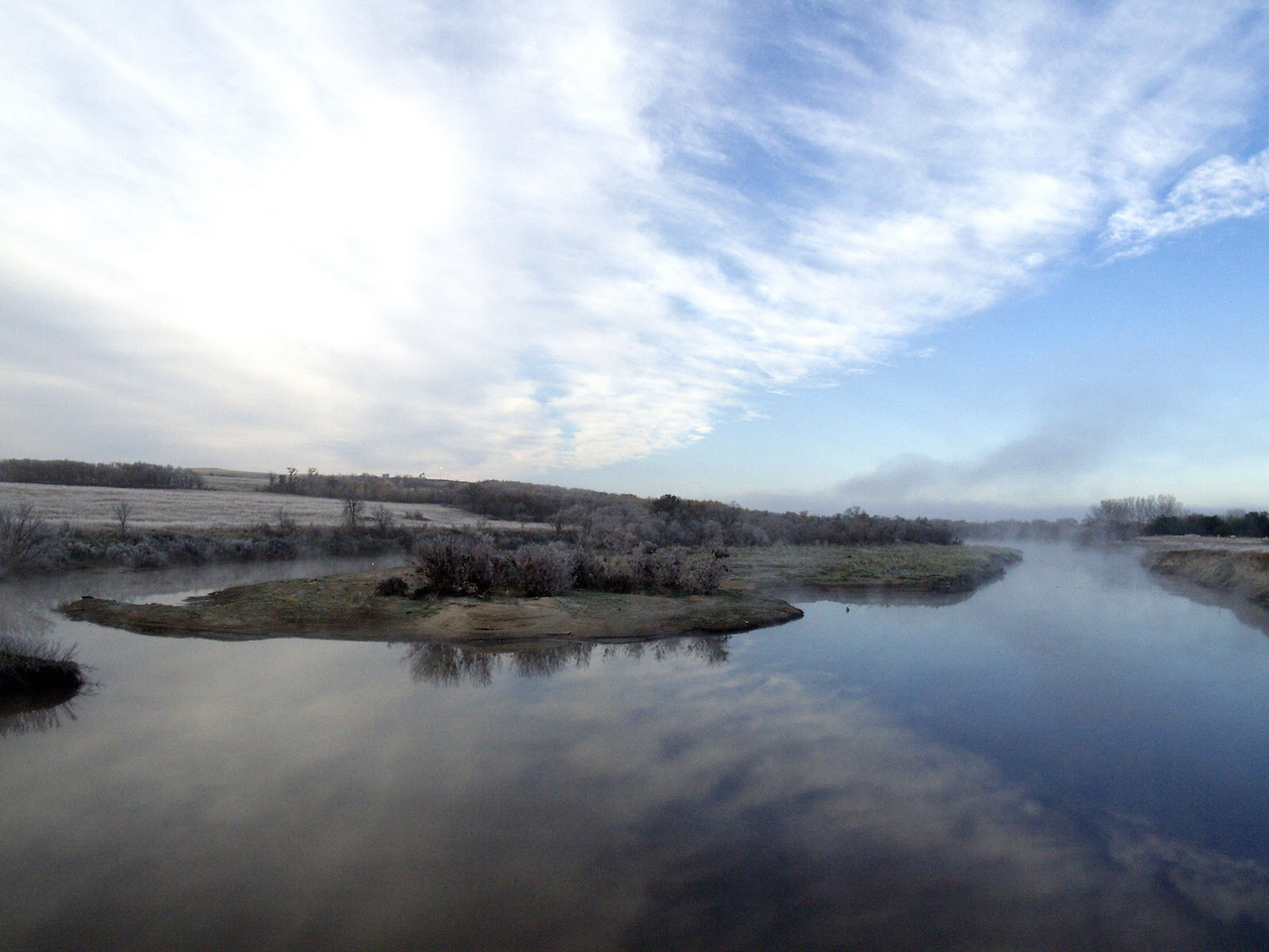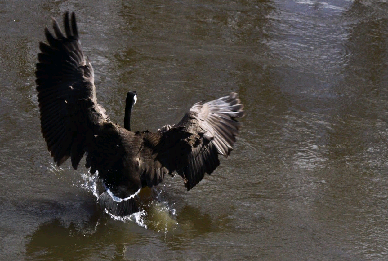 강을 따라내려 가면서 봄에 알을 부화해 어느 정도 자라난 새끼들을 데리고 노닐던 기러기 가족들이 계속해서 우리 눈에 들어 왔는데, 우리의 카누가 이들에게 접근 하면서 그들과의 거리가 점점 가까워졌고 아직 날지 못하는 새끼 기러기들을 보호하기 위한 부모 기러기들은 어쩔줄 모르며 꽥꽥 거렸다. 결국 빠르지 못해 뒤쳐지게 된 이산 가족 새끼들이 자맥질로 겨우 몸을 숨기게 되는데 우린 이렇게 피신하는 새끼 기러기들을 차례로 한마리씩 지나치게 되고 어미들은 어쩔수없이 우리 앞에서 계속 진행할수 밖에 없었다. 마지막 새끼 기러기들을 우리가 다 지나치고 나서야 어미 기러기들은 뒤쳐진 새끼들을 수습하기 위해 강 상류 쪽으로 날아갈수 있었다. 새끼 기러기들이 이렇게 잠수에 능한지 이번에 처음 알게 되었다. 지구상에서 가장 비옥한 땅 중의 한곳인 이곳의 강물은 진흙 퇴적물이 풍부해 탁하게 흐른다. 한때 거대한 바다의 얕은 해저를 이루었던 북미 대륙의 정 중앙인 이곳에 쌓인 퇴적물에는 온갖 종류의 고생물 화석들이 발견되곤 한다. 얼마나 오랜동안 이 강은 생명의 수액을 흘려보내고 있는 것일까. 일류 문명의 발상지 중의 한곳인 중국의 황하보다도 훨씬 오랜 세월동안 생물의 원천인 바닷물과 민물을 품어오고 있다.