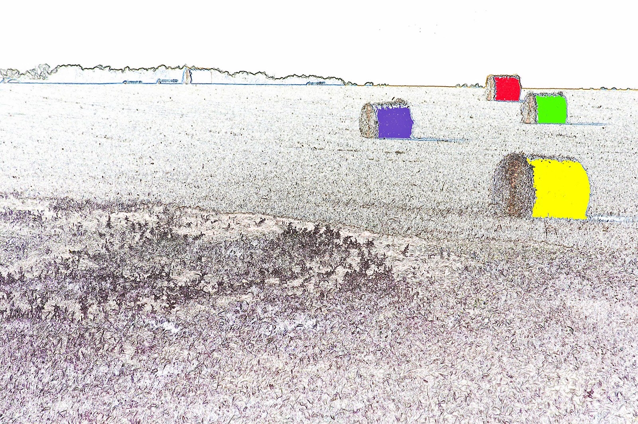 hay roll들이 정성스럽게 말려 제가 태어나고 자란 그곳 한편에 놓여 있는 걸 보는 건 괜한 노스탤지어에 젖게 한다. 이젠 노련한 황금색 건초더미로 화했지만 어린 풀들이었던 시절엔 저렇게 색동색이었을 것을..