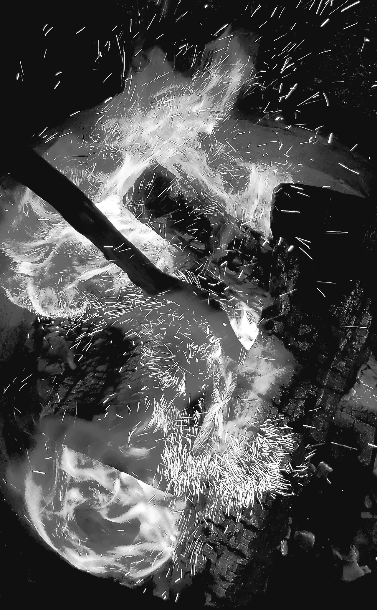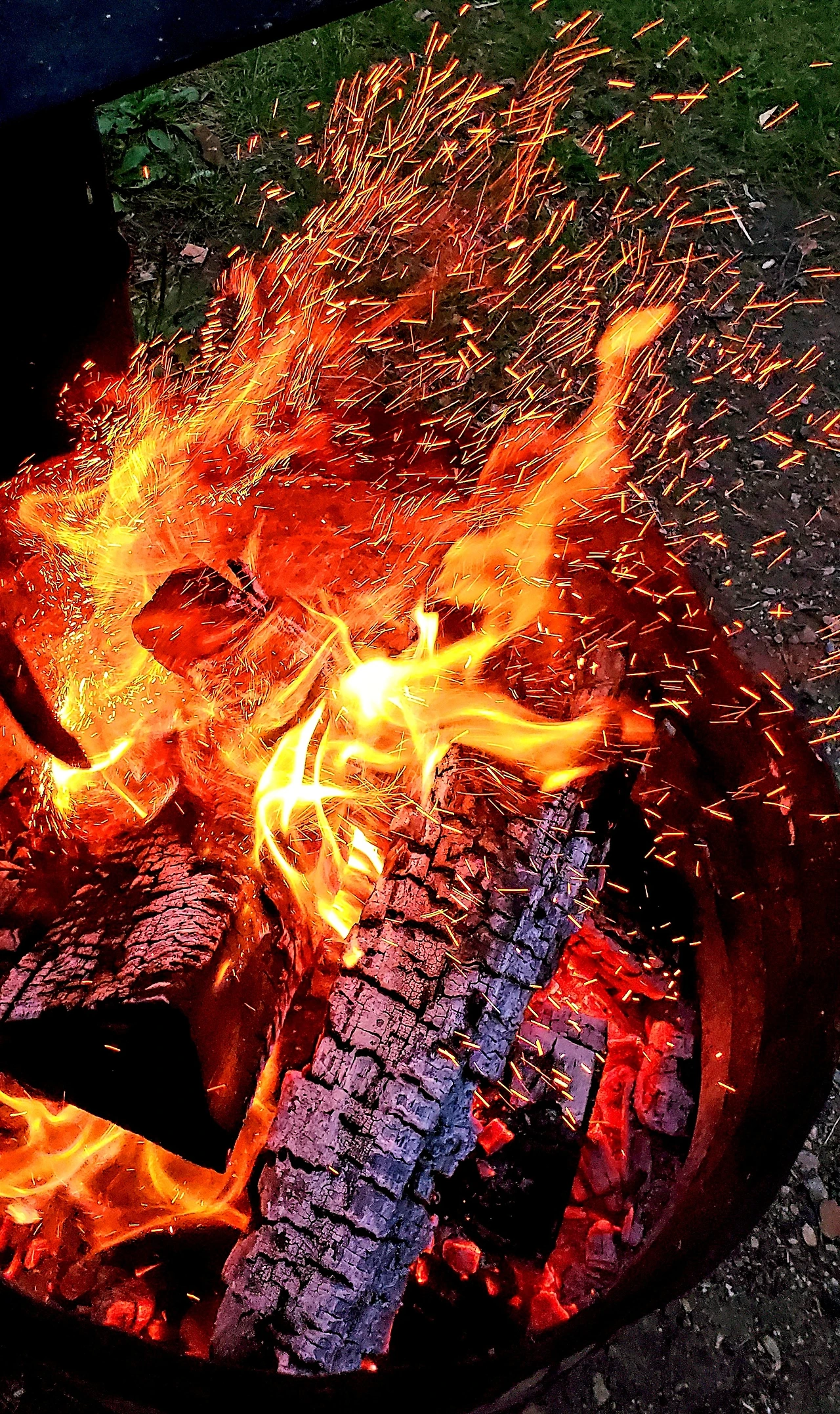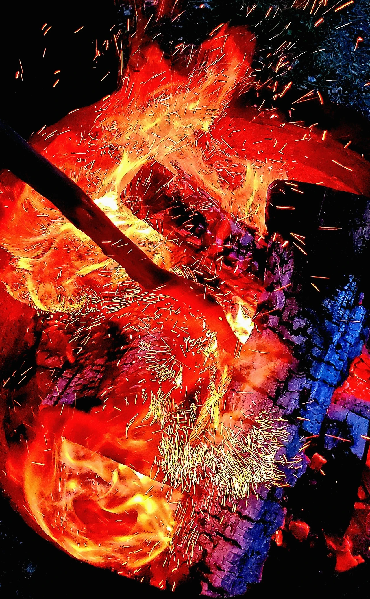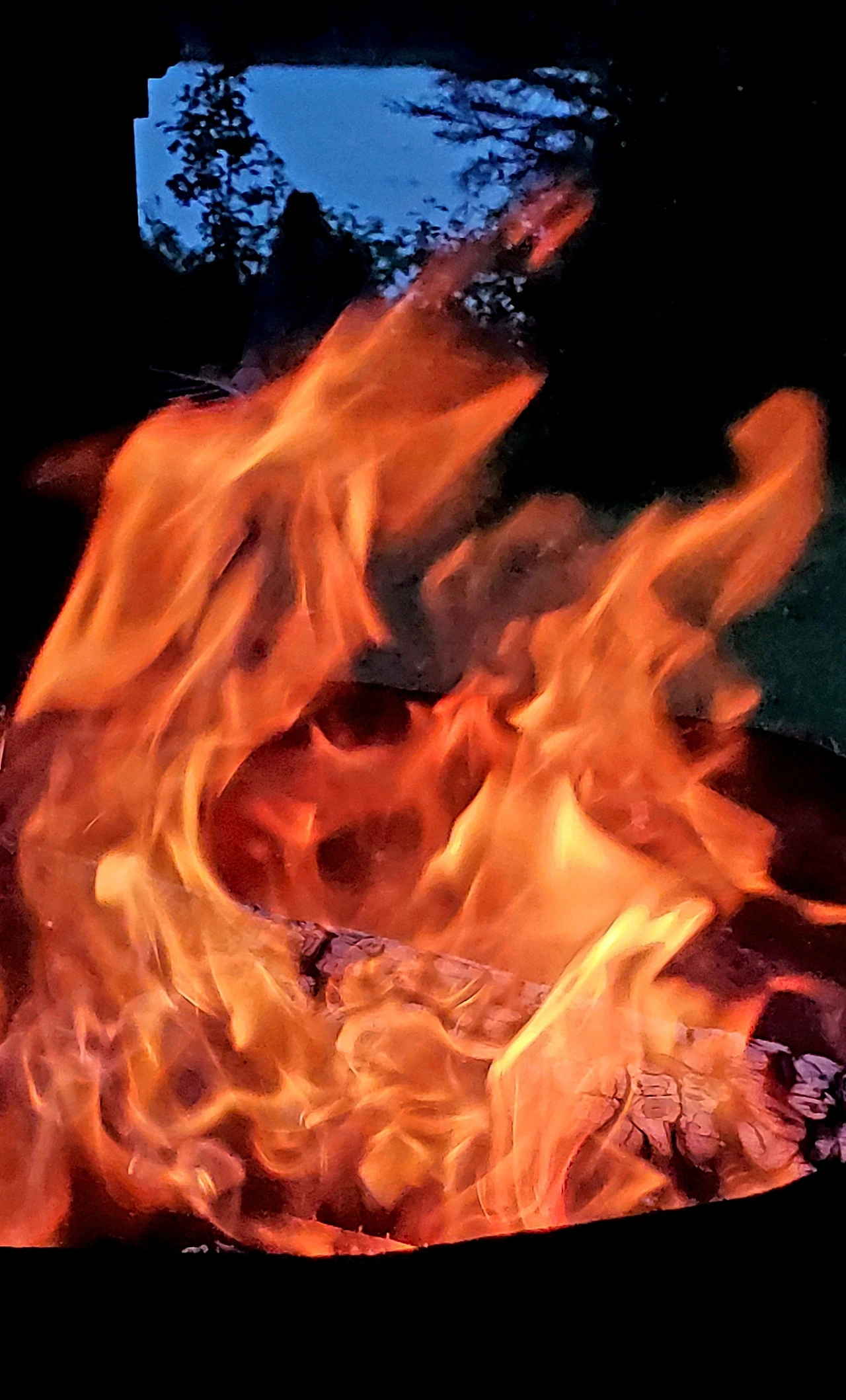 이들이 돌아 가고, 우린 활활 타는 모닥불을 끄기 아까워 모닥불 사진을 찍어 보기로 했다. 아들이 장작을 헤집어 불꽃이 맹렬히 날아 올렸고 난 플라즈마의 그 멋진 춤을 폰에 담았다.