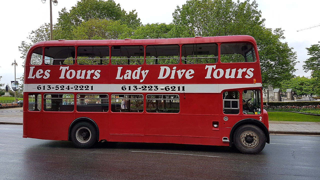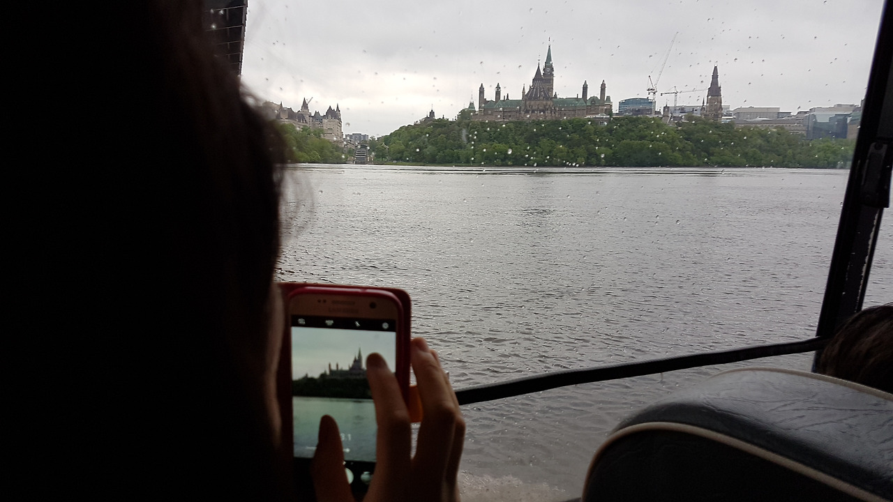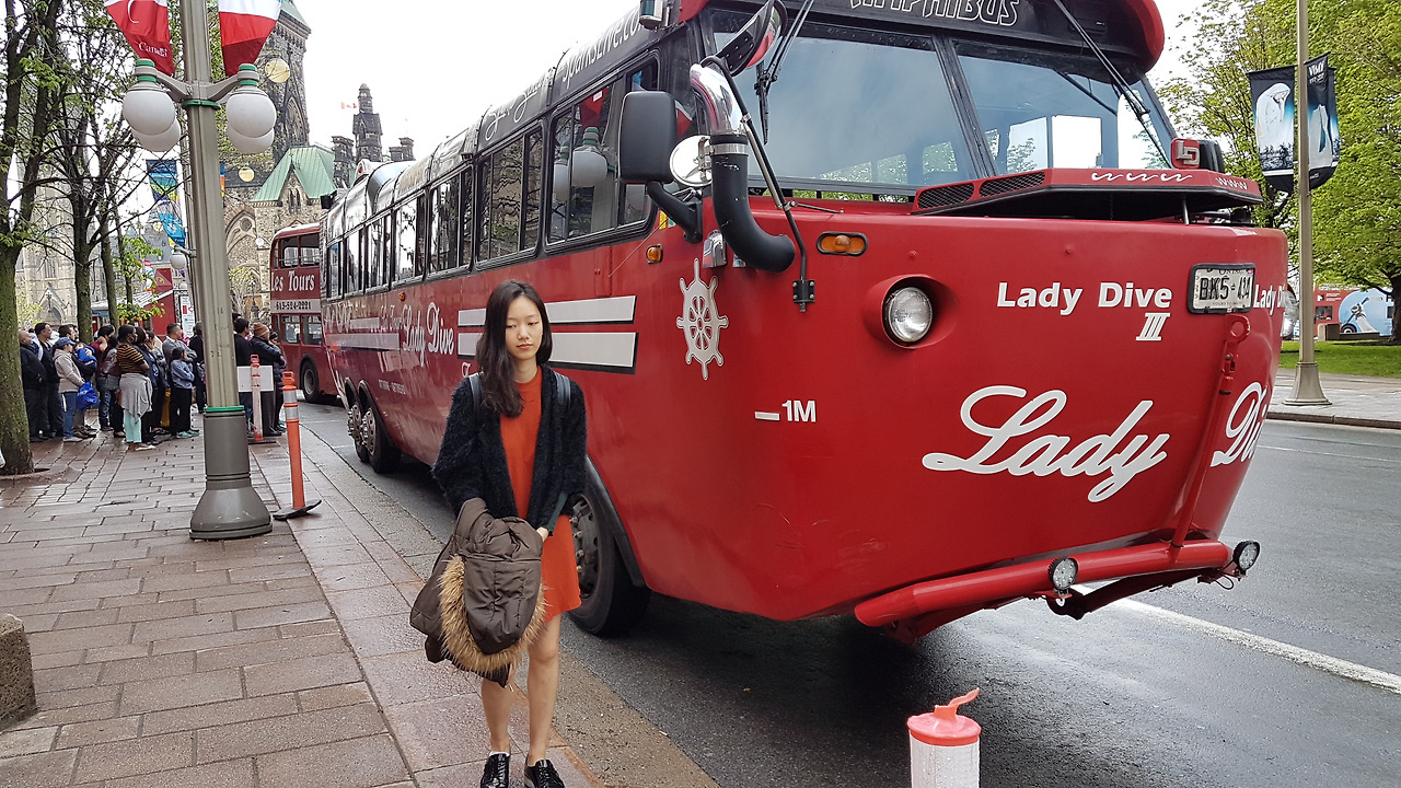 런던의 오랜 명물 이층버스가 제데로 복원되어 시내 관광에 나서고 있었는데 우린 웃기게 생긴 수륙양용 버스를 타고 오타와 강을 둘러 보기로 했다. 마침 막 떠 나려는 차에 운좋게 자리가 있었다.