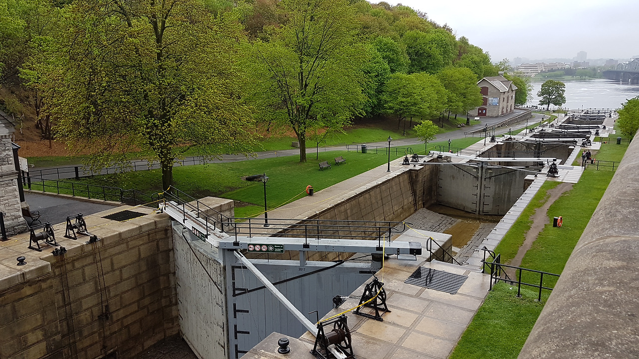 계단형으로 locks 들이 설치되어 물의 높이를 조정 하는데 겨울엔 오타와 시민들을 위한 낭만적인 아이스 링크로 변한다.