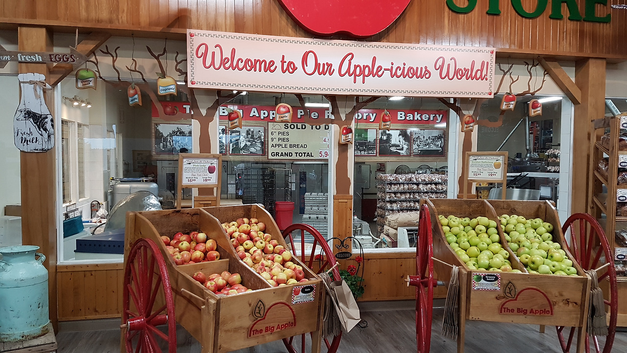 엄청난 관광객들로 붐비는 하이웨이 옆 빅 애플 공장 휴게소에 들러 무알콜 애플 샴페인도 사고.