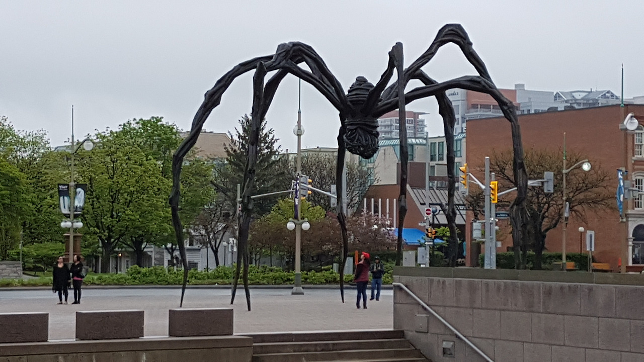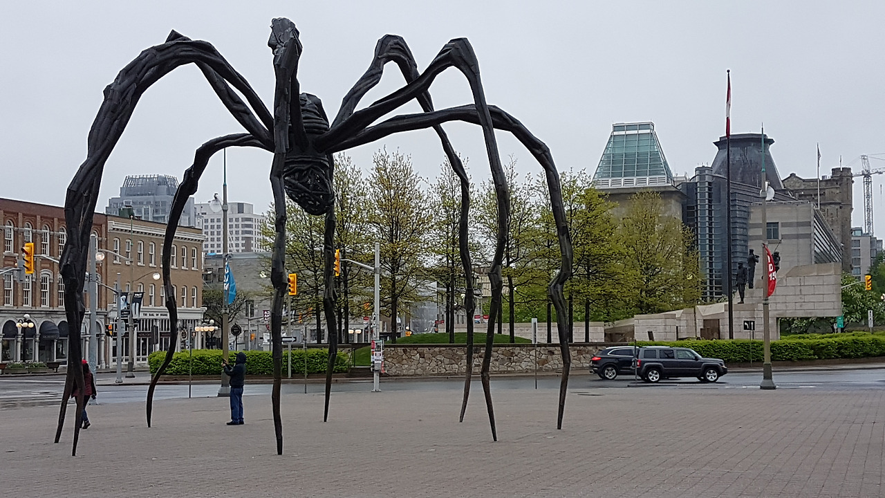 서울의 마망은 엄마 거미와 성장한 새끼 거미가 함께 있는 것이었고 이곳 오타와 국립 미술관 앞마당엔 엄마 거미가 새끼들을 배에 품고 있는 형상이다. 굳이 모성이라는 모티브를 떠올리지 않아도 여덟 다리로 서있는 완벽한 안정감과 비장함은 바라보고 있을수록 마음을 편하게 해주면서도 뭔가를 다짐하게도 만든다. 그래서 이 공간에 머무는 시간을 길게 해준다.