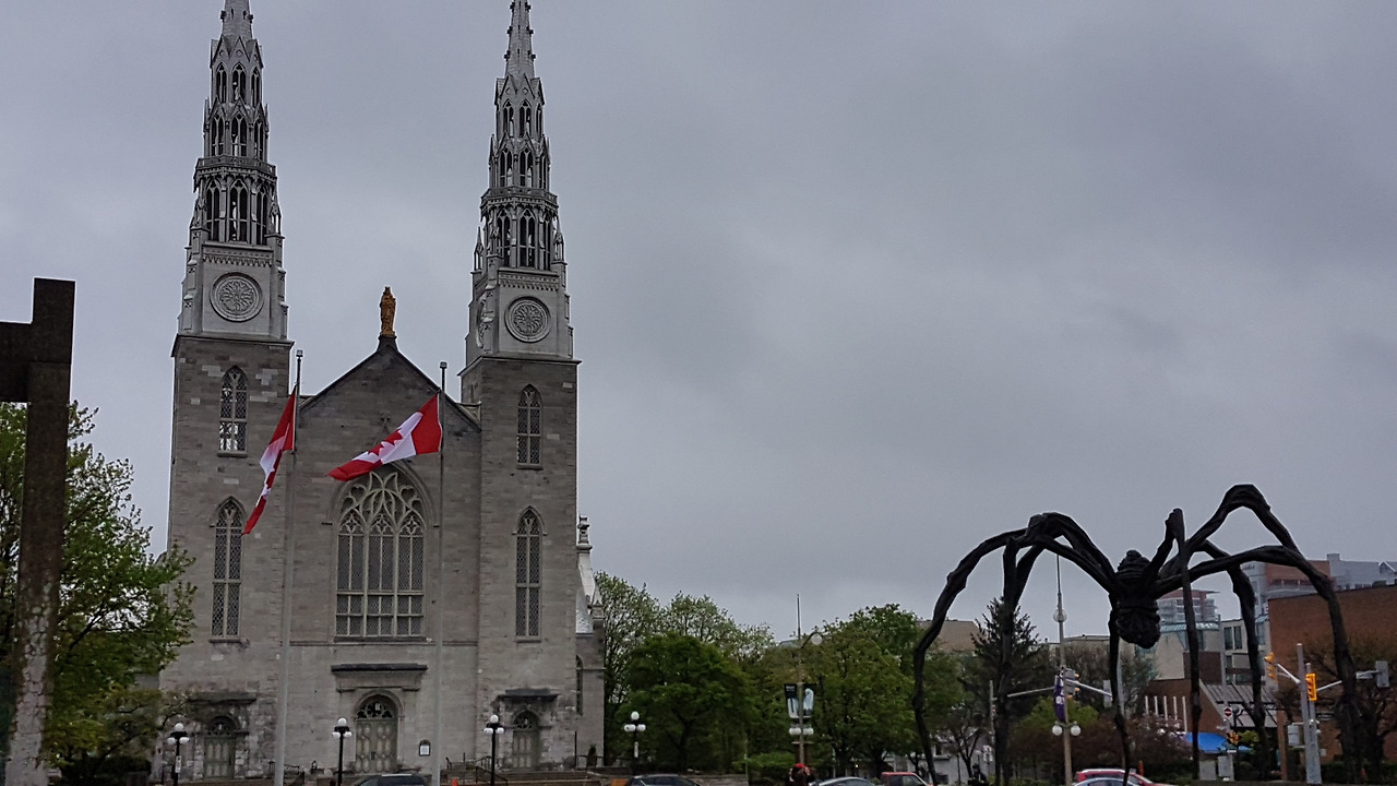 오타와를 첨 방문했을때 순간 스치고 지났던 거대한 엄마 거미 마망(maman)을 자세히 보고 싶었다. 이 유명 작가의 작품인 마망은 여러나라 유수의 미술관 뜰에 설치되어 있는 모양인데 난 이곳 오타와에서 잠시 본 이후, 서울의 리움 미술관에서 자세히 볼수 있었다. 그리고 오늘 다시 찾은 오타와의 촉촉한 아침 산책길에 여유있게 녀석의 자태를 감상하게 된거다.