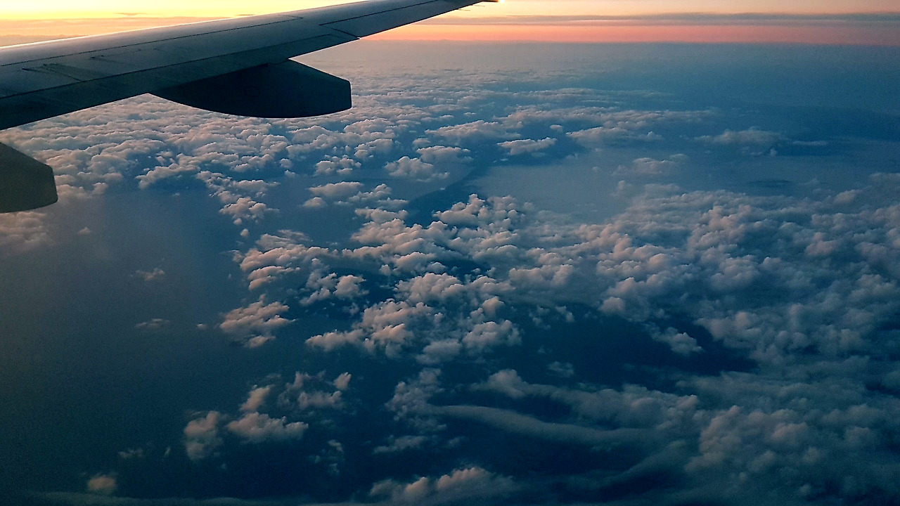 리자이나와 토톤토 사이의 비행은 많이도 했지만 낮 비행에서는 한번도 창가 자리에 앉은 적이 없었다. 야간 비행에서는 바깥이 보이질 않으니 무의미 하긴 한데 지난번 처럼 야간 비행 내내 오로라가 함께 했던 경우엔 황홀함 그 자체였다. 좌간 이번엔 왕복 모두 창가석이라 한여름의 아름다운 구름과 그윽한 노을을 실컷 즐겼다.
