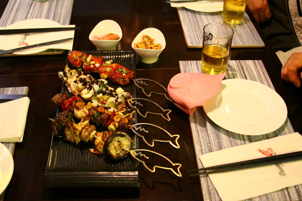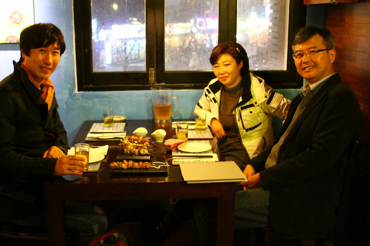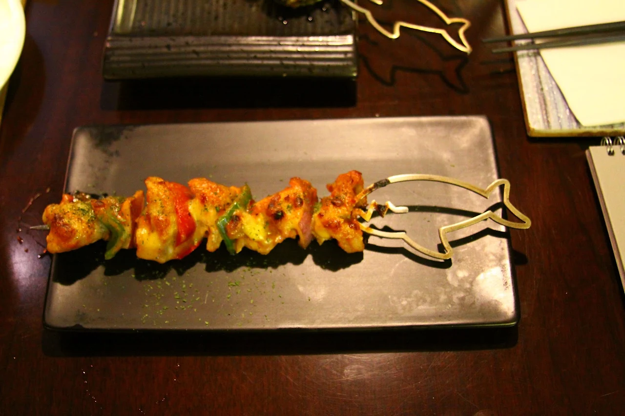 대전 연구단지에서 먼길을 달려온 승훈 부부와 Dinning R 에서의 만찬 후, 알렉의 제안에 따라 우리는 약간의 입가심을 위해 이곳 꼬치구이 집에 왔는데 예전 스타일의 단순한 꼬치 요리가 아닌 신세대들의 감각이 살아있는 즐거운 요리였다. 각종 육류와 야채, 그리고 큼직한 버섯들이 숯불에 제대로 구워져 나왔는데 맛도 좋았지만 프리젠테이션이 쿨했고 다양한 꼬치를 빼먹는 재미 역시 좋았다.