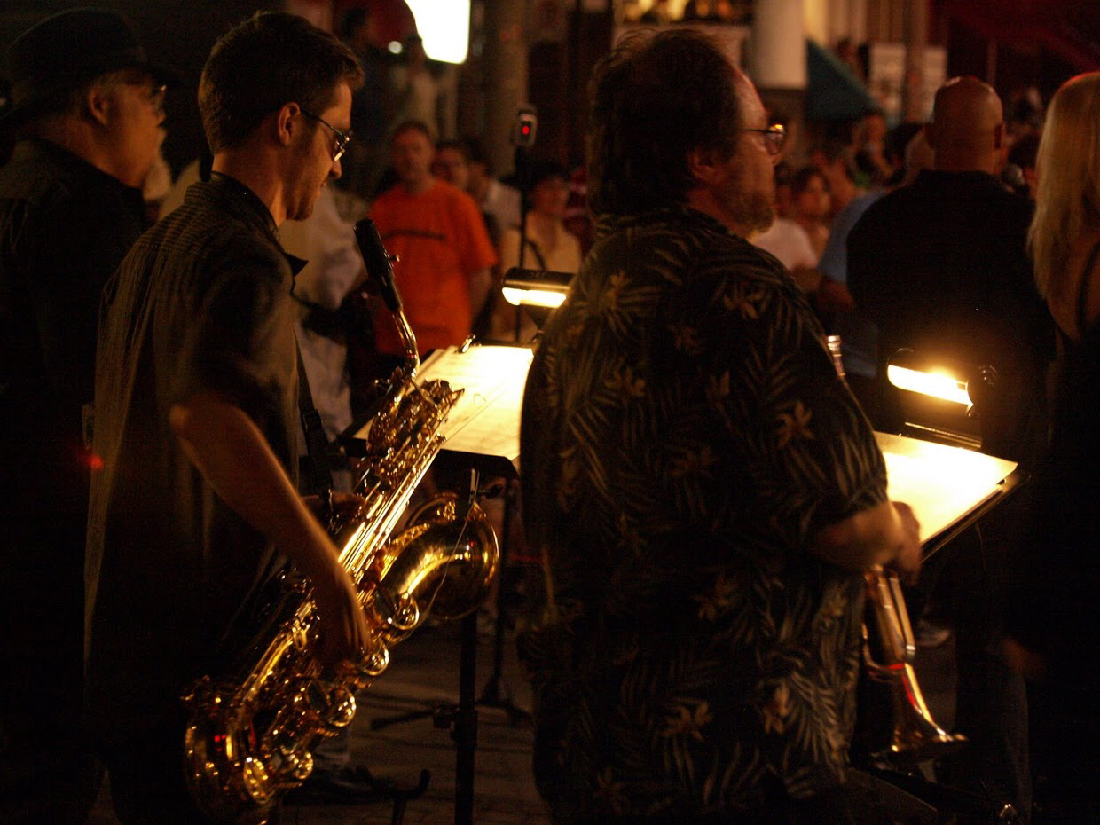 끝없이 이어진 인파의 사방에서 서라운드 형식으로 각 재즈 연주가들의 공연이 벌어지고..