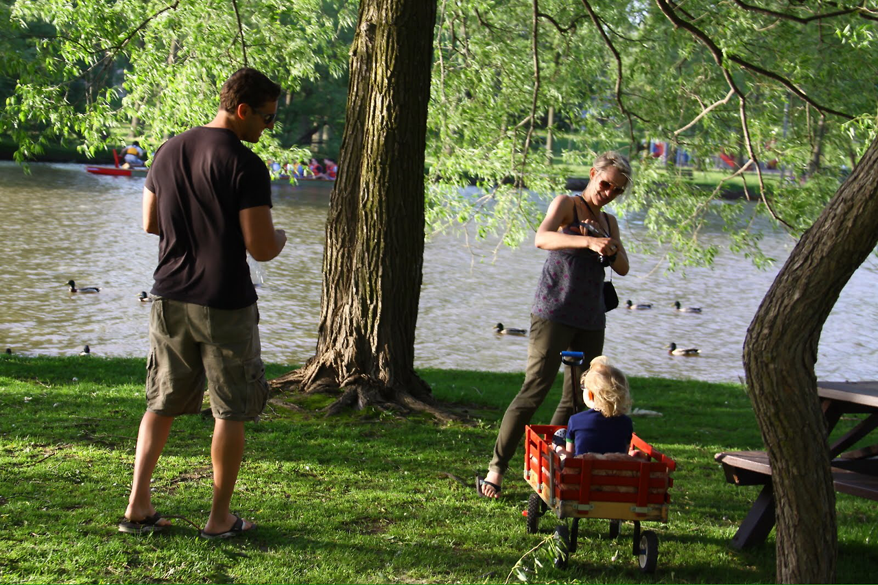 햇살을 머금어 더욱 반짝이는 금발의 아기를 산책시키는 젊은 부부는 너무나 행복하다.
