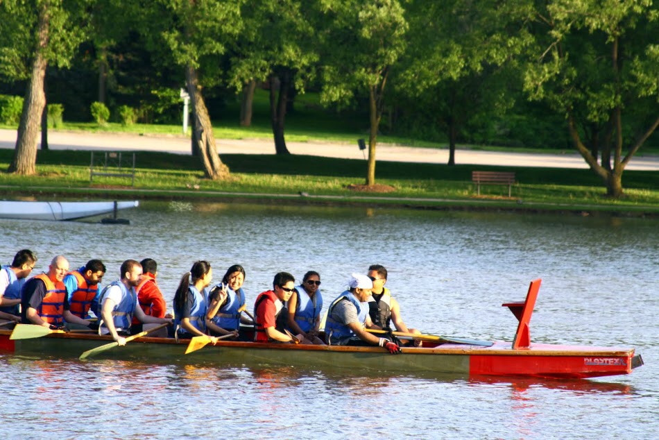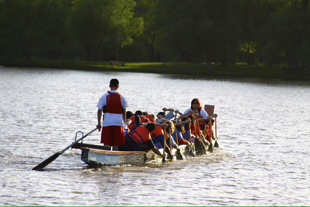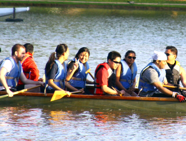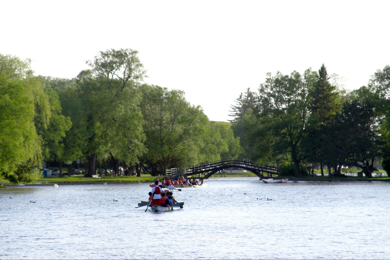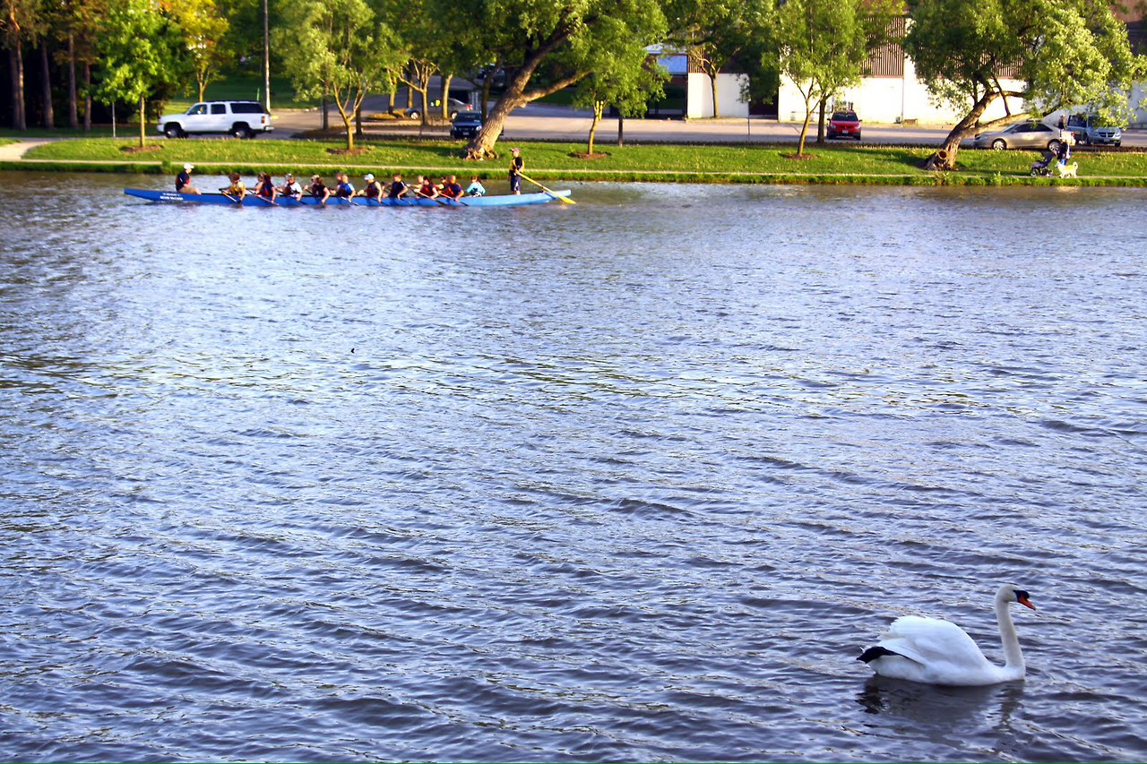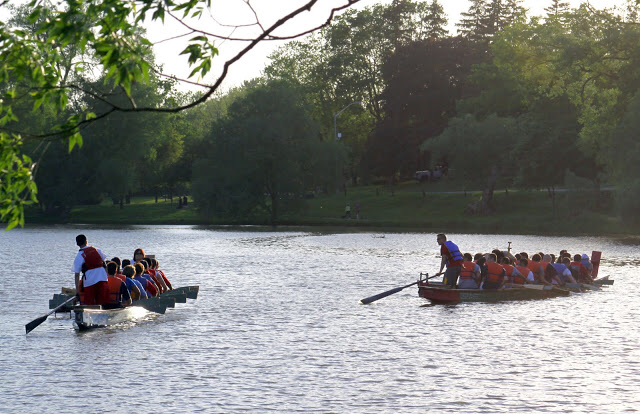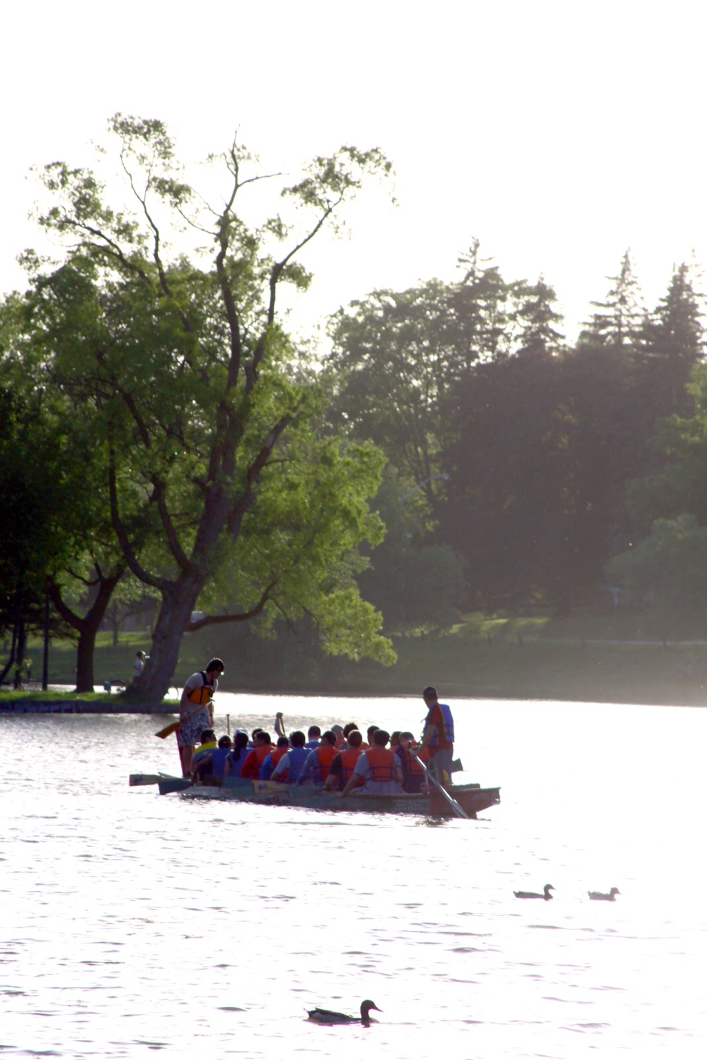 아마도 매년 토론토에서 개최되는 드래곤 보트 경주대회에 참가하기 위해서인 것 같은데 서너 대의 드래곤 보트가 훈련에 한창이었다. 자신들의 사진을 찍는 날 보고는 V 자를 그려주는 싱그러운 숙녀.. 정말 심하게 아름다운 날이다.