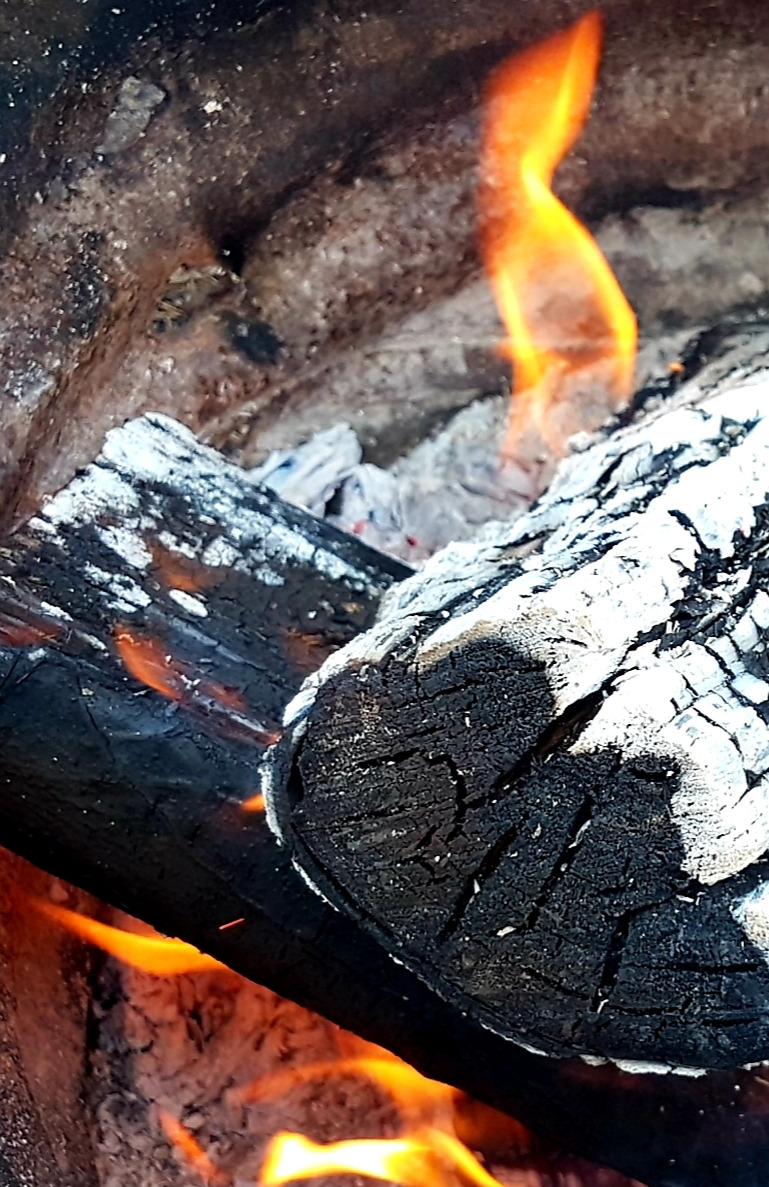 데울 음식이 없는 바베큐 데크의 장작불은 소박하고 다정스럽다.