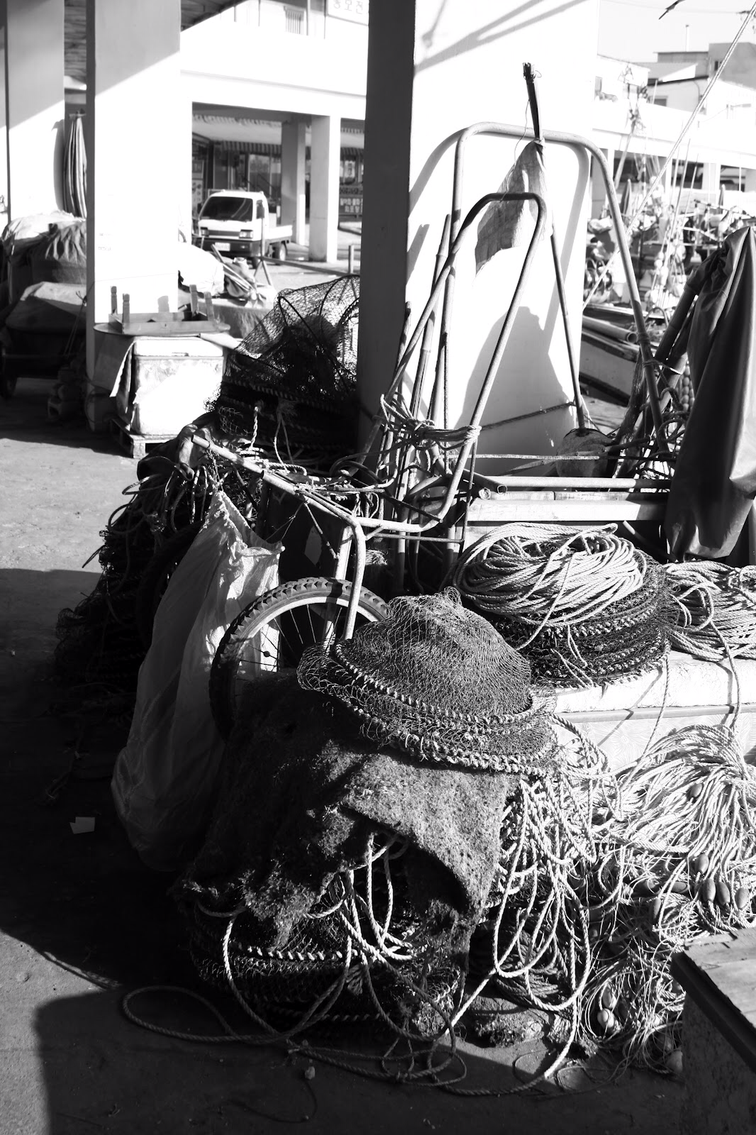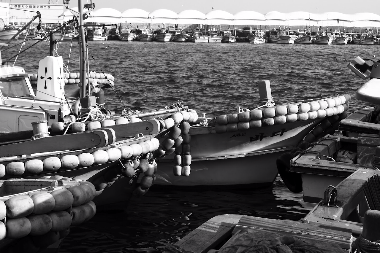 어린 시절 서울의 어느 골목에서나 쉽게 눈에 띄던 리어카는 이곳에서는 아직도 그 든든한 쓰임새의 자리를 지키고 있었다. 어망의 그물과 추, 그리고 수많은 낚시 바늘들을 저리 정성스럽게 정리하며 어부는 그의 장남을 떠올리고, 막내 딸내미도 떠올리고, 연로하신 노모도 떠올렸을 것이다.