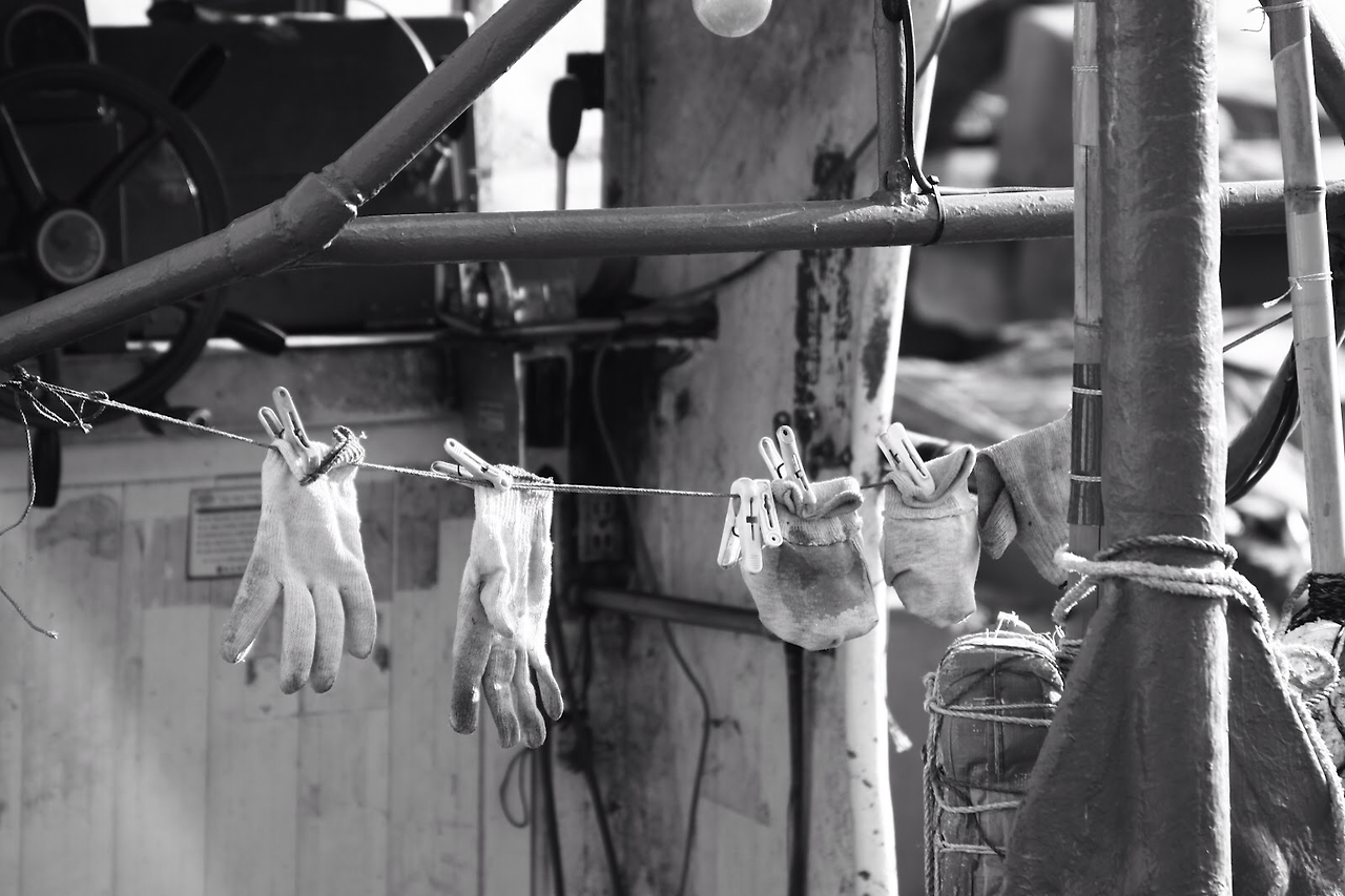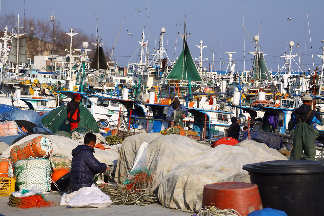 어부들의 또 다른 손들이 제 주인의 고마운 심정과 함께 정갈하게 세탁되어 따사로운 겨울 햇살을 받으며 다시 태어나고 있다. 저 손들은 그 거친 겨울 바다에서 얼마나 쉴 새 없이 움직였을까..