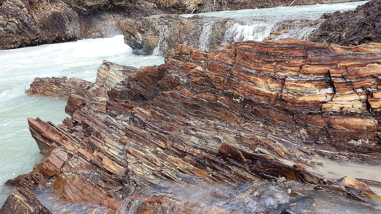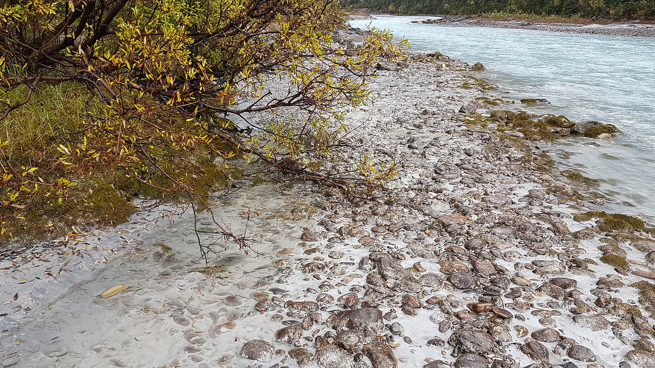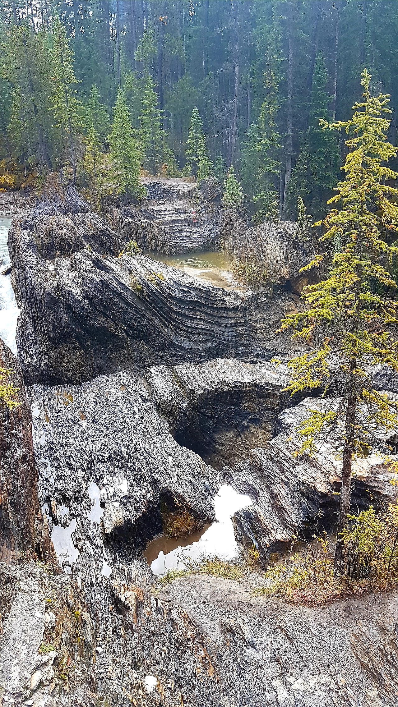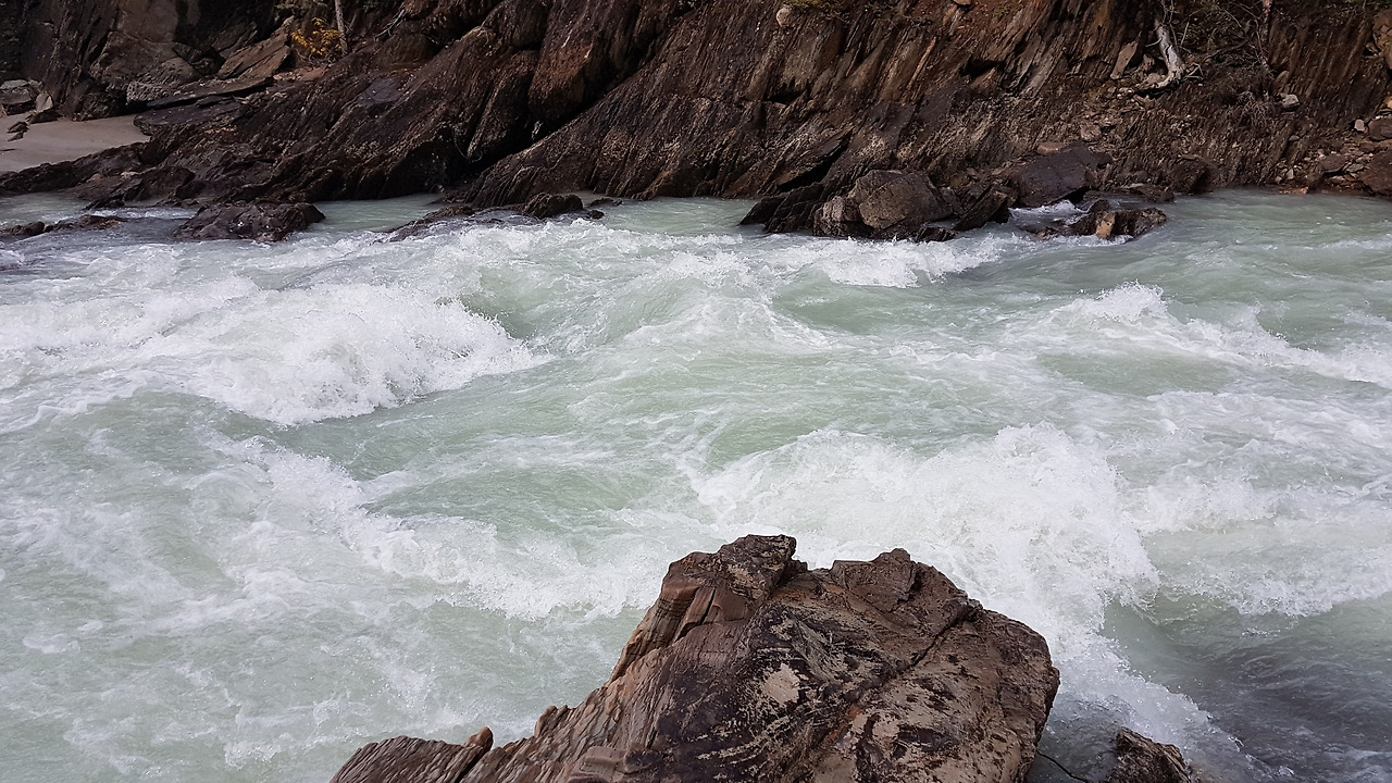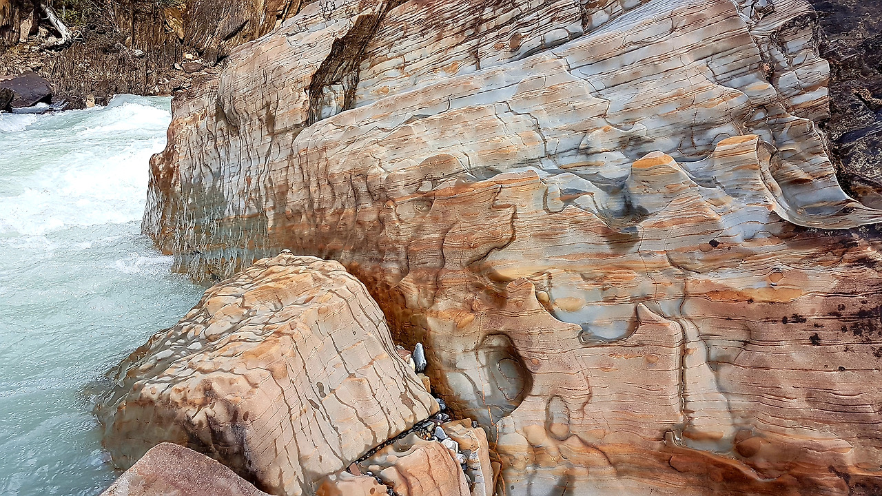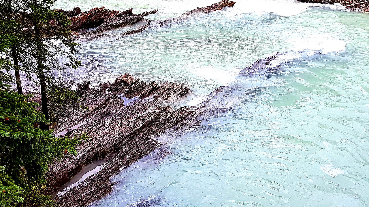 캐나디안 록키의 어느 곳에서나 대형 산사태 avalanche 주의 표지판을 많이 접하게 된다. 지금 우리가 거닐고 있는 이곳이 바로 아발란치가 발생해 거대한 눈더미에 쓸리고 묻혀 버린 곳이다. 아마도 수년 이상 눈 속에 파묻혀 있었을 고목들은 고사목 형태로 조금 남아 있고 온통 조약돌 들로 가득 찬 이곳엔 빙하 물만 개울을 형성하며 여러 곳에서 흐르고 있었던 거다.