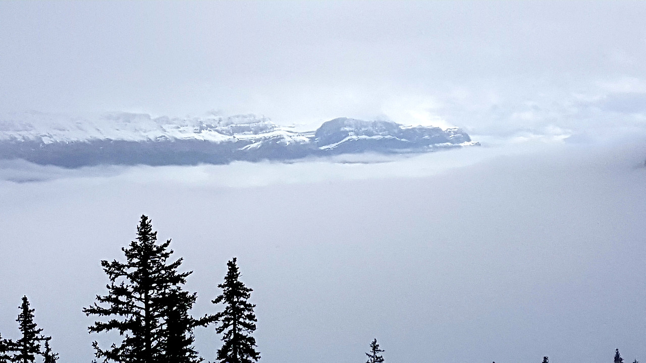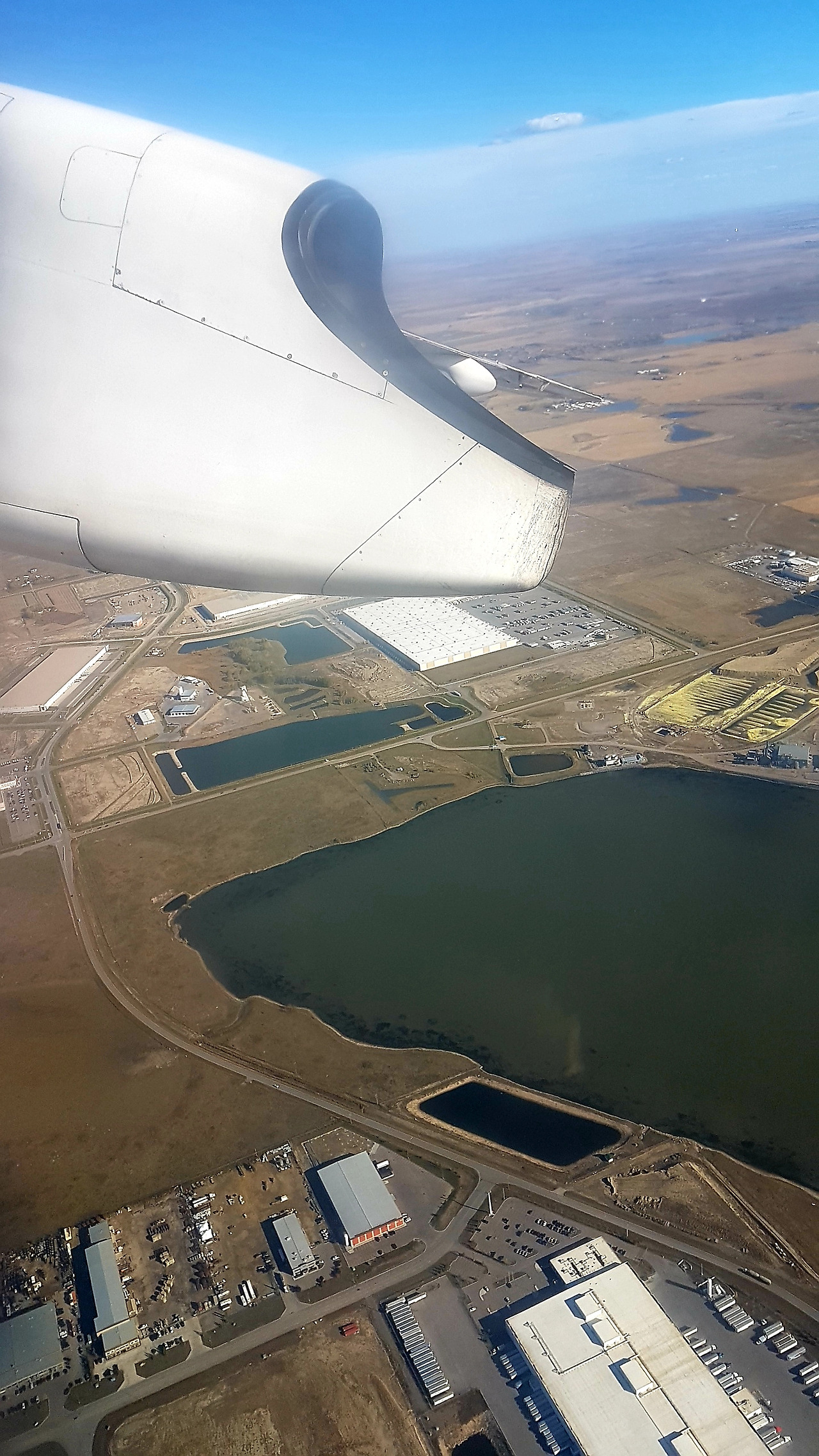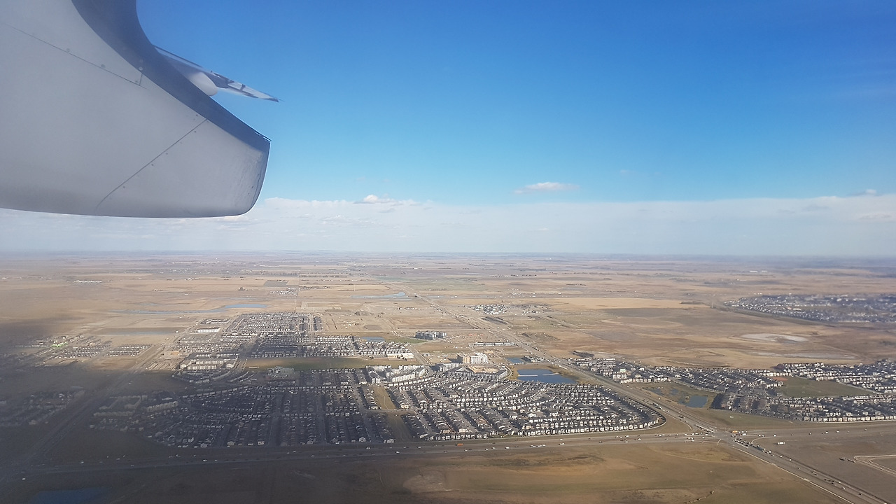 비행 여정 내내 구름과 안개가 가득해 캘거리 공항 터치 다운 수백 미터 상공에서야 겨우 시야가 확보되었다.