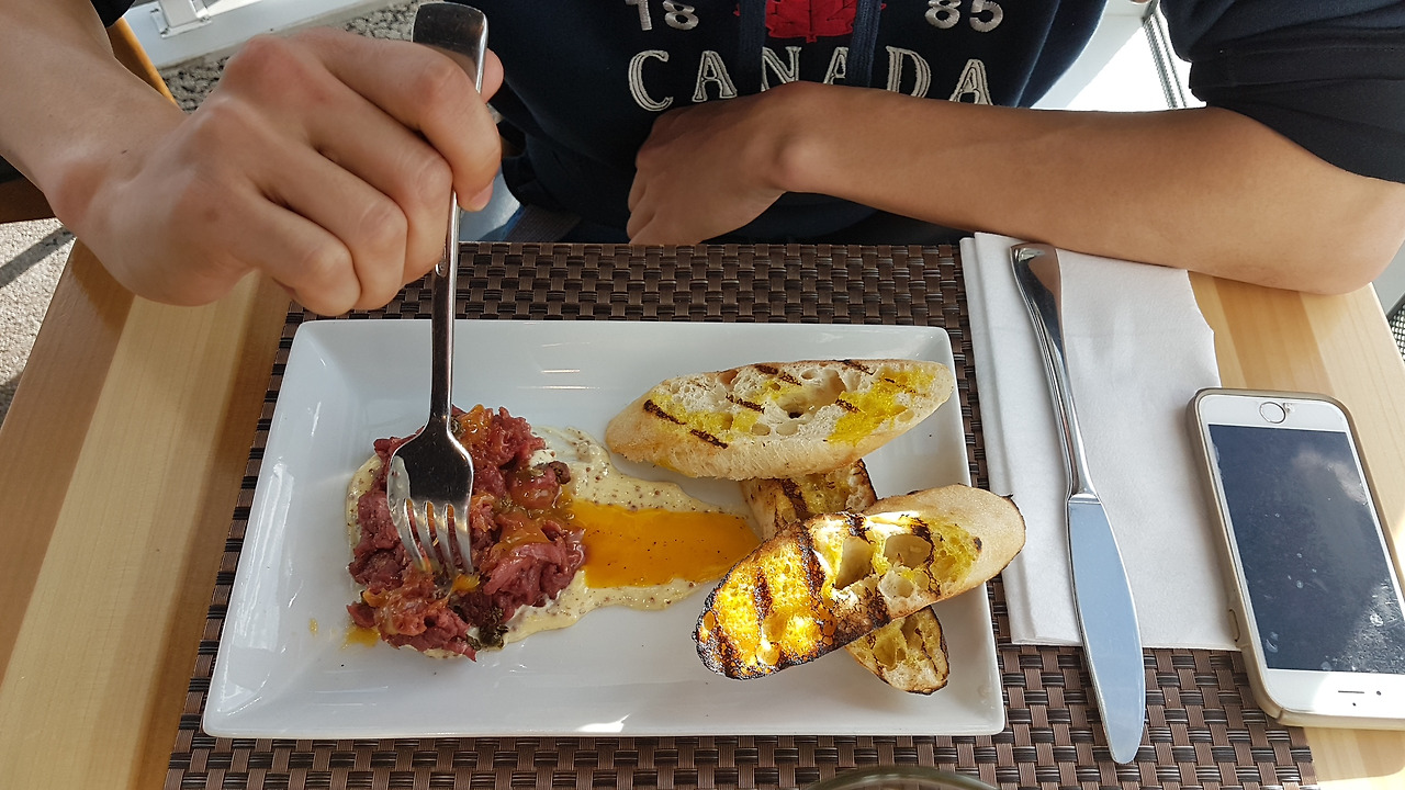 주로 rare로 스테이크를 즐기는 아들은 아메리칸 들소 bison의 육회 요리를 시켰다.