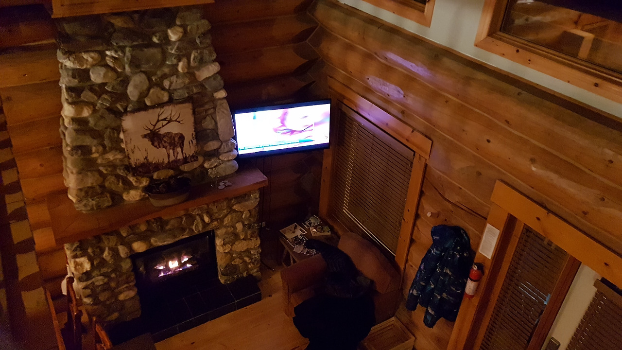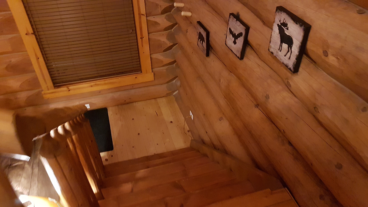 아침에 일어나 보니 우린 이 큰 이층 구조의 통나무 캐빈을 통째로 빌린 거였다.