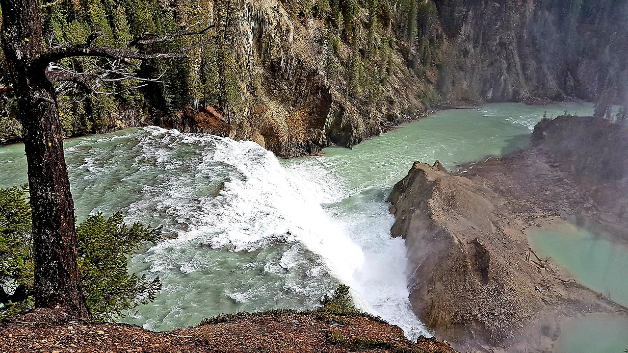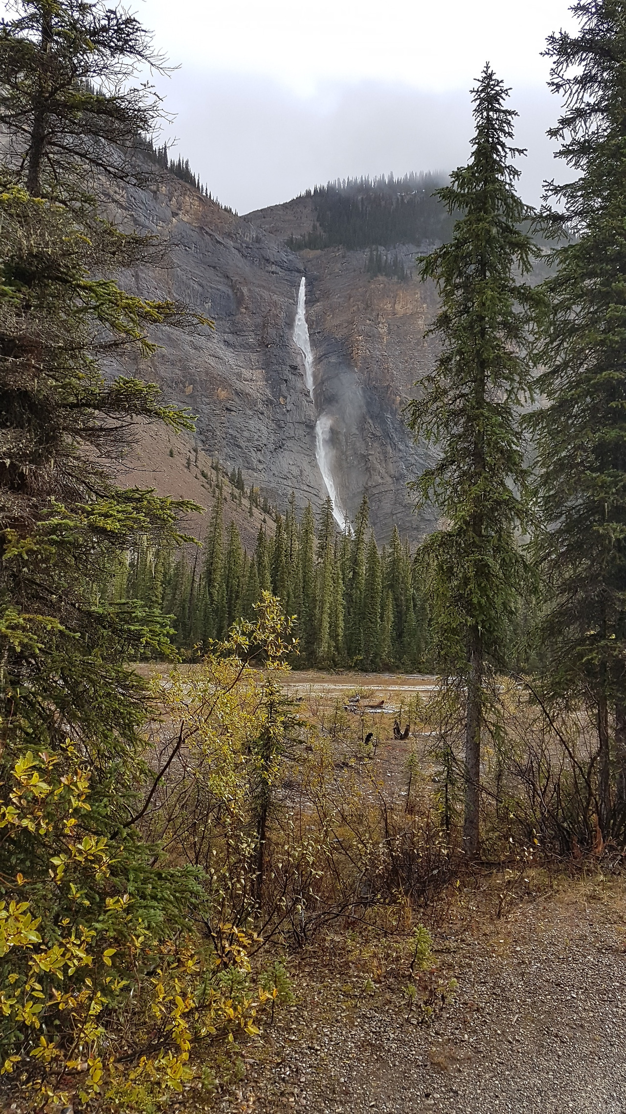 아들이 구글로 서치 해 오늘의 첫 방문 사이트로 정한 타카카우 폭포로 드러 섰다. Takakkaw는 인디언 말로 장엄하다는 뜻이다. 300 미터 정도의 자유 낙하를 이루는 폭포다.