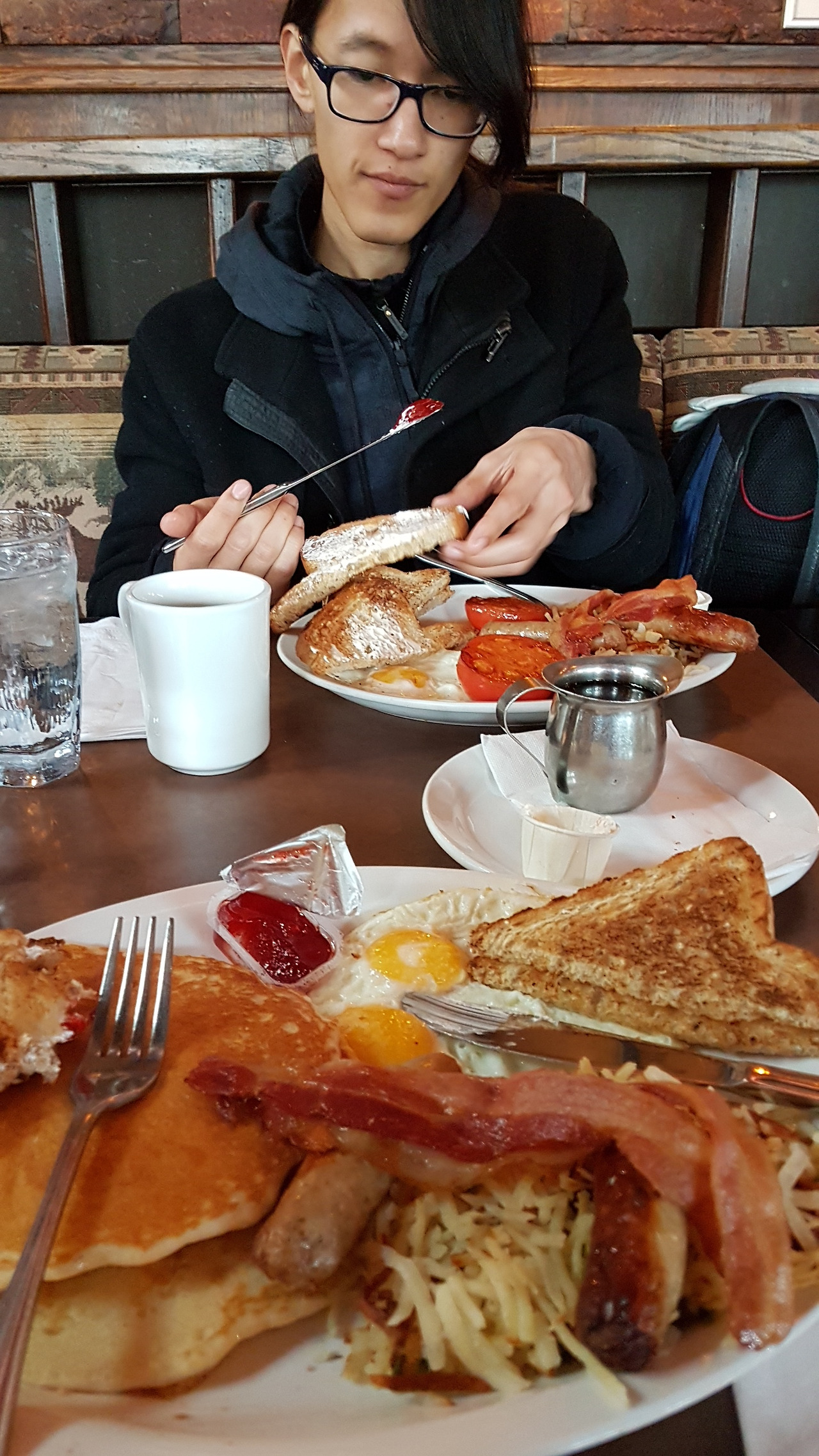 트레일을 앞둔 우리는 아침 식사 중 가장 양이 많을 걸 골라 싹싹 다 비웠다. 마침 밴프 다운 타운에서 가장 유서 깊은 레스토랑에 찾아왔던지라 음식의 양과 질이 마음에 쏙 들었고 진한 아침 커피 역시 엄지 척!