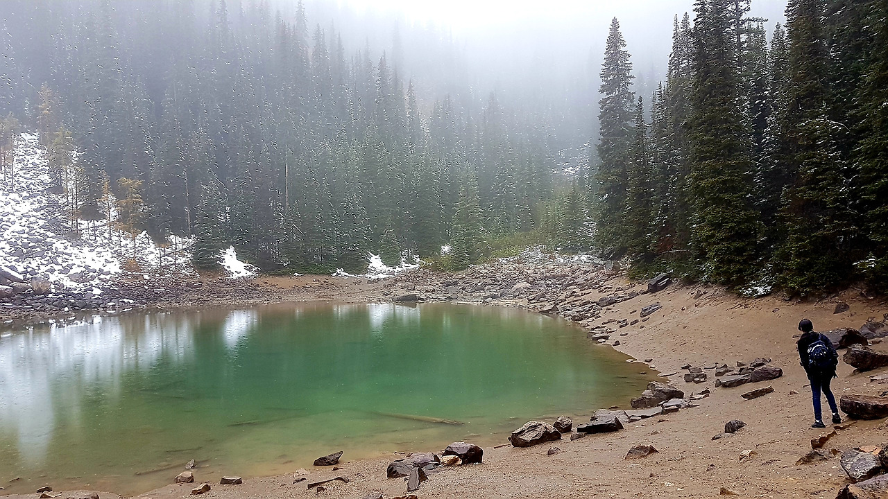 드디어 도착한 레이크 아그네스는 고산 빙하 지대의 분위기가 가득하다.
