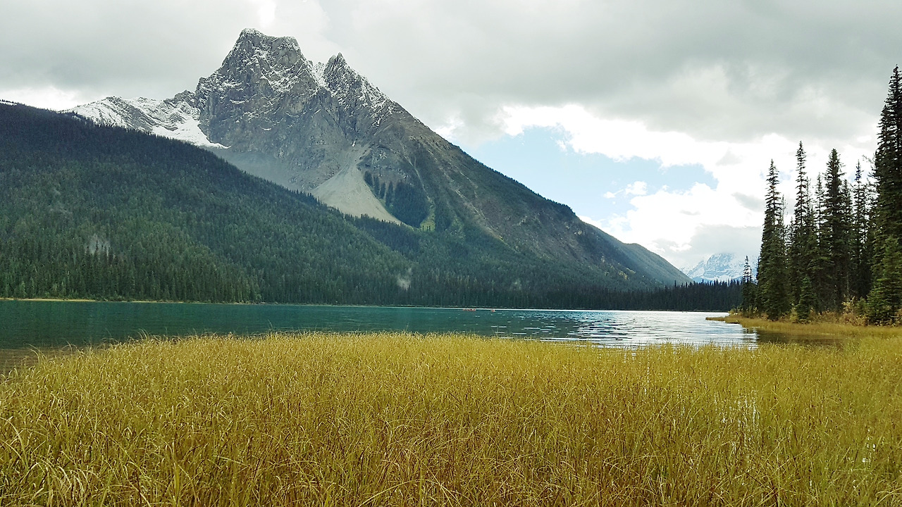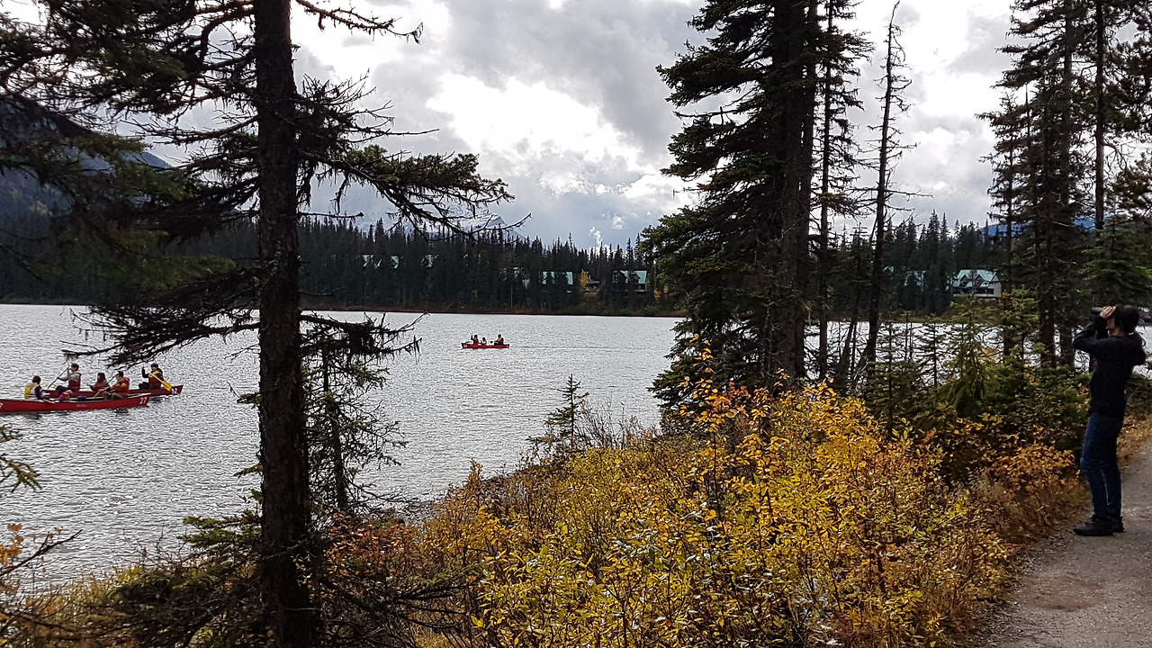 레이크 루이즈의 반 정도 크기의 호수와 주위에 솟은 그리 높지 않은 봉우리들은 내 마음을 푸근하게 했다. 마침 비쳐내리는 부드러운 햇살은 레이크의 아름다움에 다정스러움을 더했다.