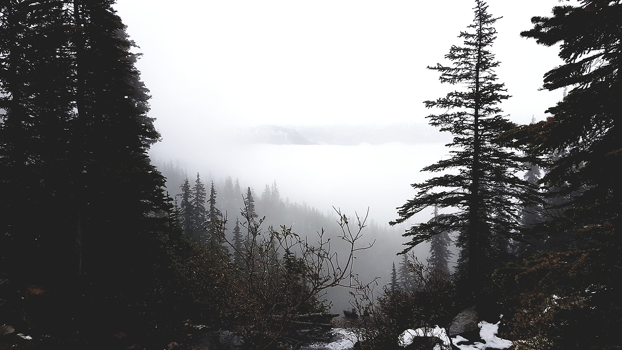 자욱한 안개와 약간의 눈이 섞인 가랑비가 주는 분위기는 뜨거운 햇살 아래에서 보다 훨씬 더 많은 감상에 젖게 한다. 숲 생명들의 원천인 수분이 가득한 때의 트레일은 온갖 생명의 뜨거운 찬가가 울려 퍼지는 가운데 한걸음 한걸음 내딛는 것이다.