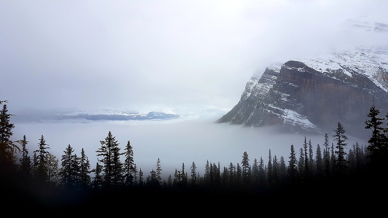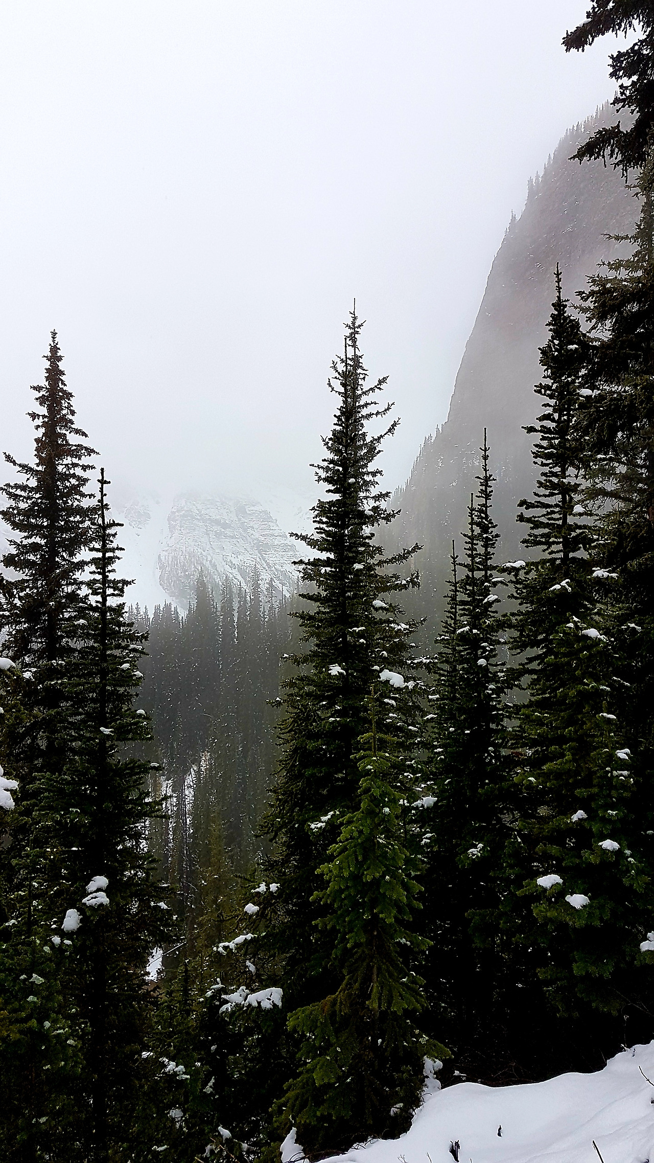 아들과 난 안개가 자욱한 가운데 눈과 비가 섞어 내리는 유서 깊은 캐나다 횡단 1번 도로인 Trans-Canada Highway 를 두 시간여 달려 Lake Louise Inn 리조트에 당도했다.