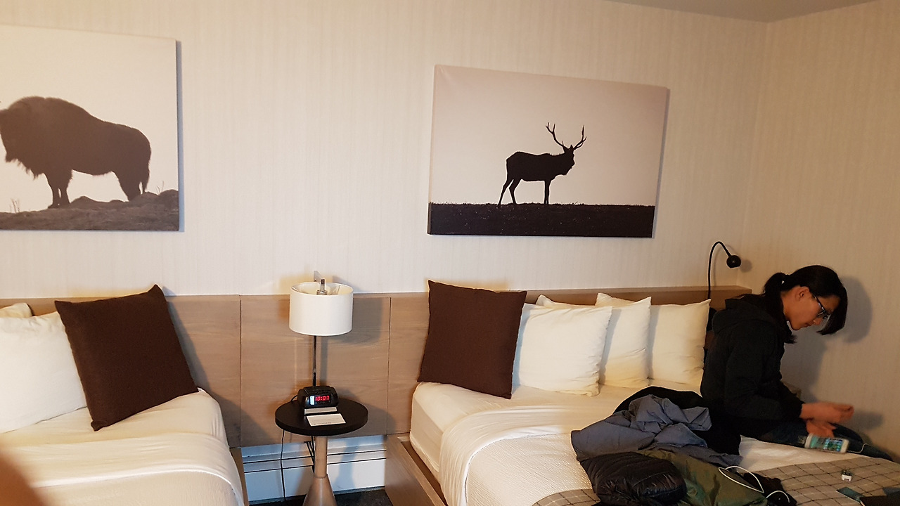리조트로 운영되는 호텔은 각종 부대시설들이 들어차 있었고 나름 고급스럽고 깨끗하게 꾸며진 룸이 마음에 들었지만 그저 잠만 자고 아침 일찍 산행 트레일에 나설 우리 부자에게는 하룻밤 328 불이라는 비용 대비 만족도는 전혀 높지 않았다. 하지만 성수기라 전 세계에서 이곳으로 밀려드는 관광객들은 고비용을 마다하지 않는 모양이다. 이곳 레이크 루이즈 에서의 이틀 밤, 다음 숙소인 BC주 Yoho 국립공원의 통나무 2층 캐빈 에서의 이틀 밤 모두 우린 하룻밤 300 불이 훨씬 넘는 숙박비를 지불해야 했다. 캐빈은 두 가족 6~8명도 묶을 수 있는 콘도형 통나무 집이었지만 우린 고작 두 사람이었으니..ㅠㅠ