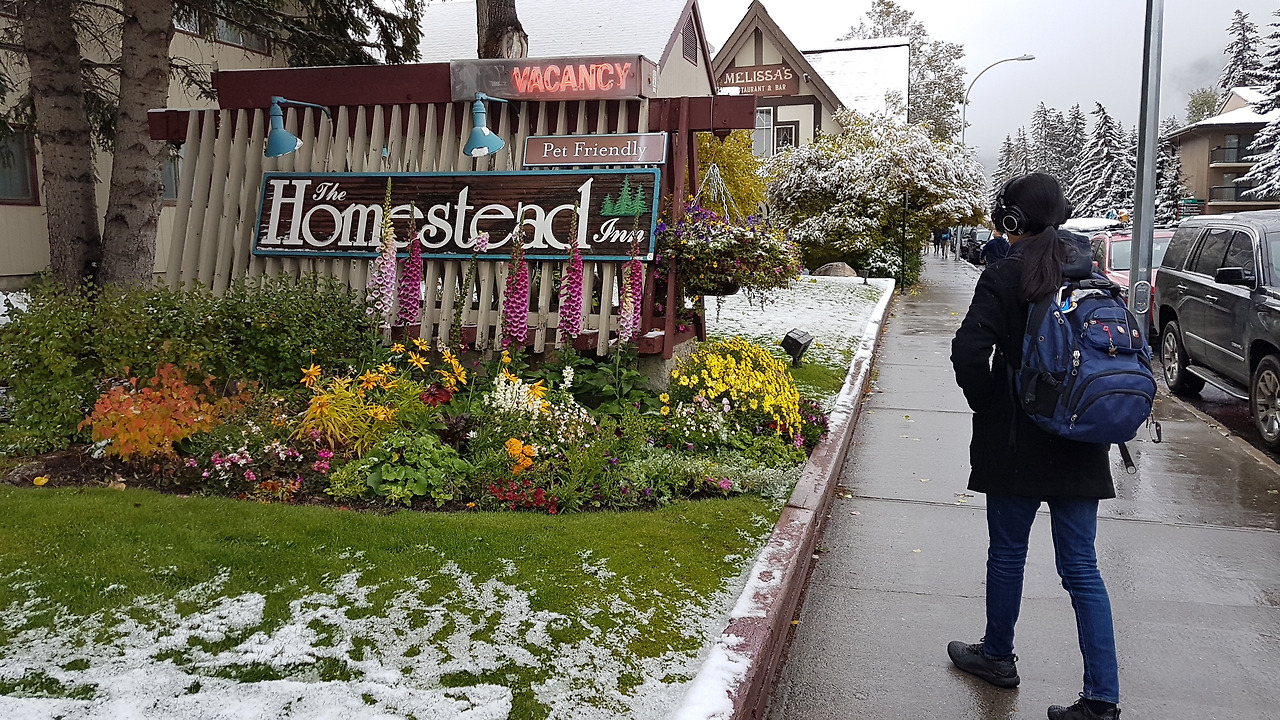 밴프 국립공원의 첫 아침, 우릴 반긴 것은 소복이 쌓인 눈이었다.